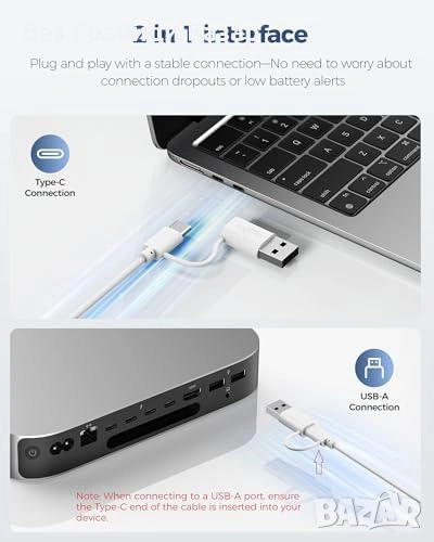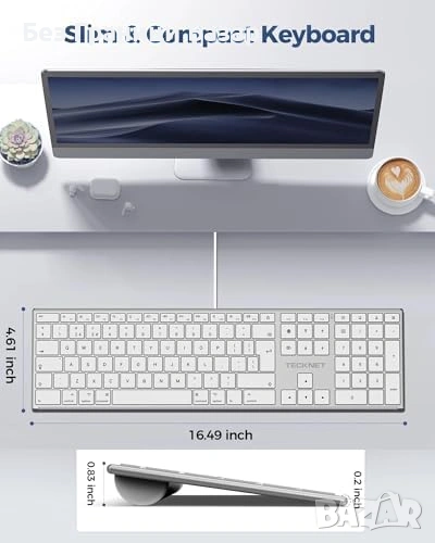 Практична жична клавиатура за Mac с USB и Type-C свързване