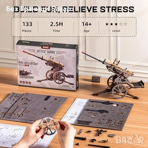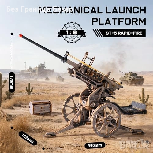 Нов 3D дървен пъзел ROKR ST-5 механичен модел 142 части с въртяща кула изстрелване