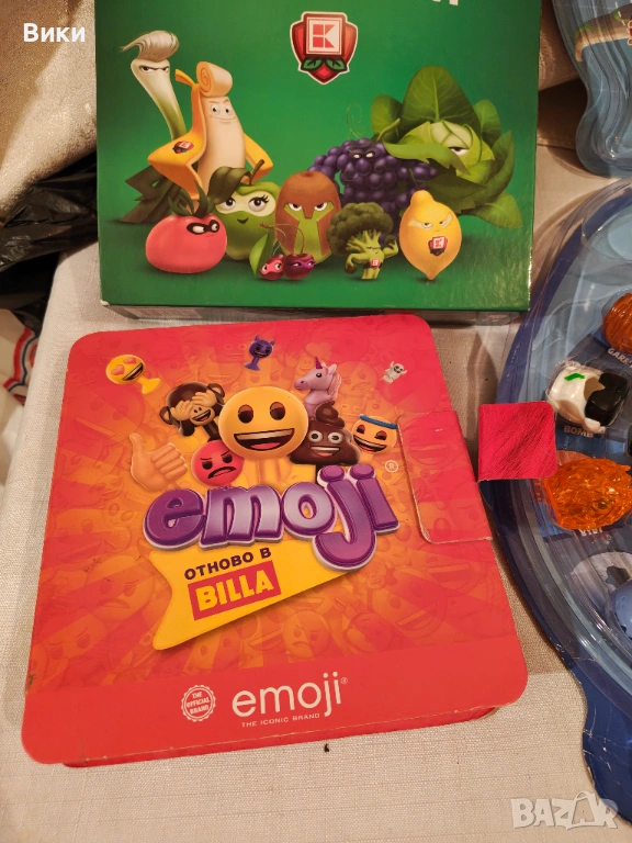 • Emoji (Billa): Червеният албум долу вляво е от кампанията "Emoji отново в BILLA". Колекцията включва 24 различни фигурки (стикита), които децата събираха при пазаруване. 18 евро