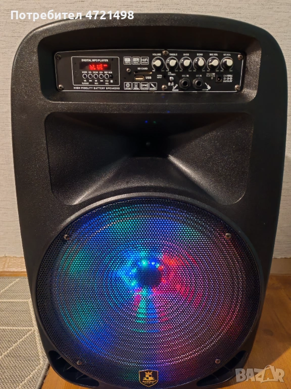 Продавам парти/караоке тонколона Avcrowns V-15 с максимална изходна мощност до 60 вата и вградена презареждаема батерия, която осигурява до 6 часа автономна работа. Много е запазена и няма никакви щети или дефекти.