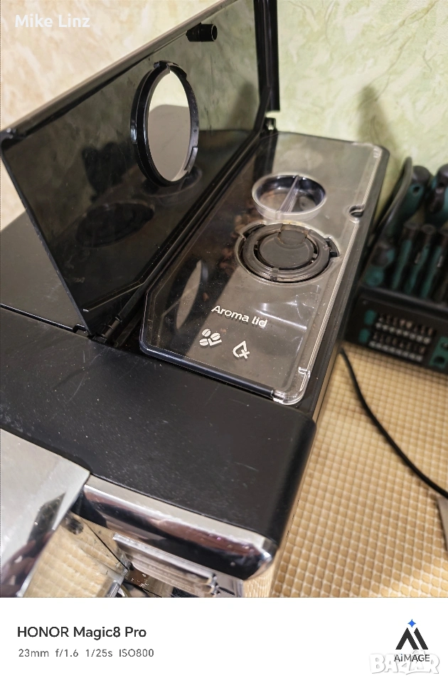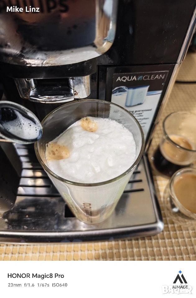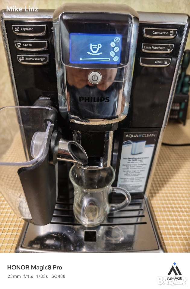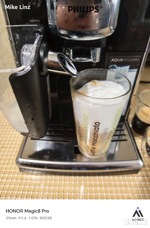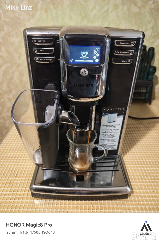 отлична автоматична кафе машина приготвя няколко вида напитки има кана за млечни продукти