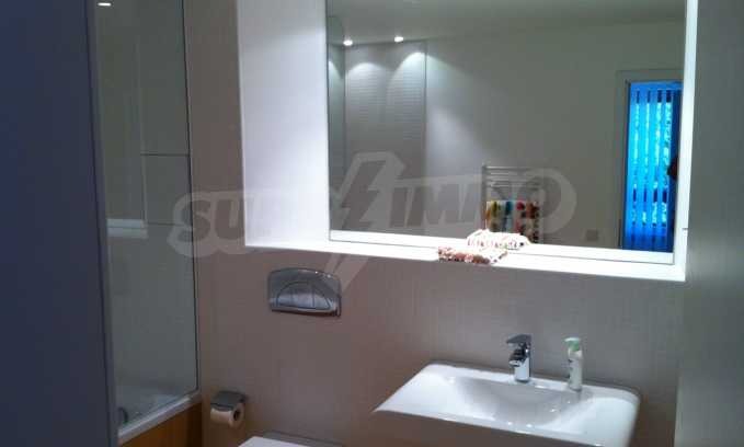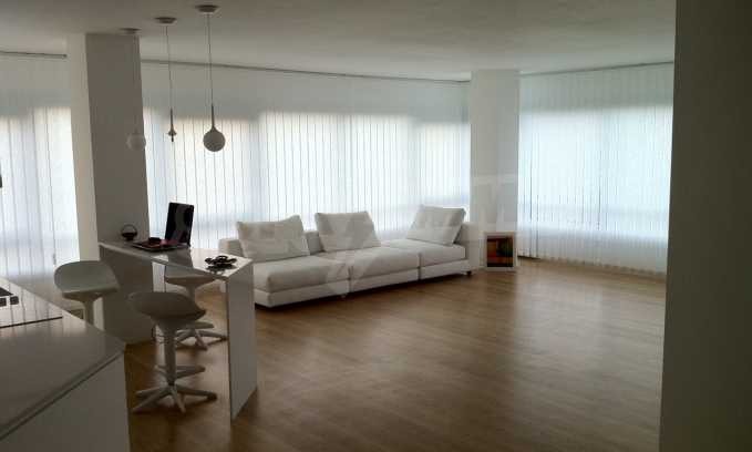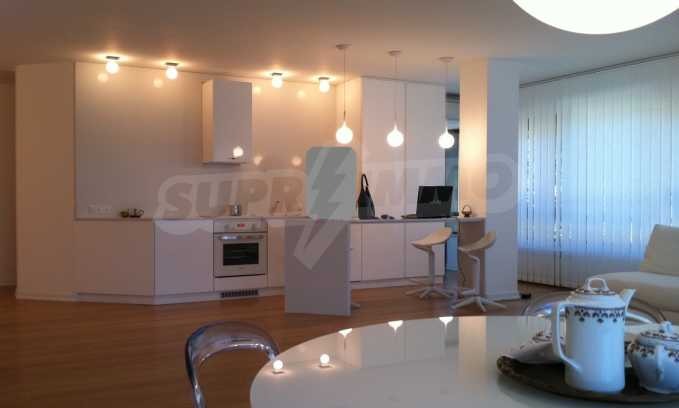 Напълно обзаведен тристаен апартамент с висококачествени мебели и материали. Състои се от просторен хол с трапезария и кухненски бокс, две спални, две бани с тоалетни, остъклен балкон и коридор. Кухненският бокс е с вградена кухня, съдомиялна, фурна, керамичен котлон, хладилник с фризер и мивка. Спалните са с вградени гардероби и легла, баните са напълно обзаведени, а в дневната има голям диван, трапезарна маса със столове и секция. Намира се на 3 ет. в нова жилищна кооперация с луксозни общи части с асансьор и има прилежащо подземно паркомясто. Отоплението е на ТЕЦ, има климатици, подовата настилка е естествен паркет, има СОТ и окабеляване.