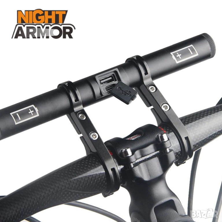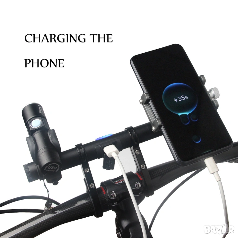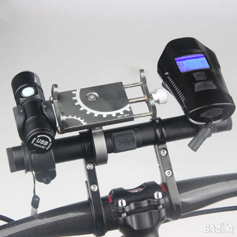 Разширител стойка за кормило велосипед с USB за колело, powerbank, алуминиева стойка за телефон, фар
