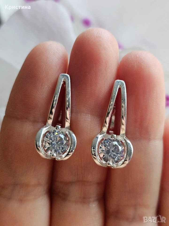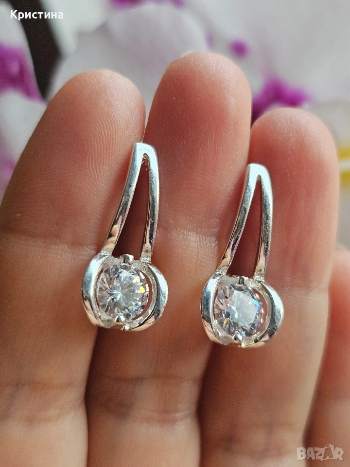 Нови сребърни обеци с циркони → Обява 54234922