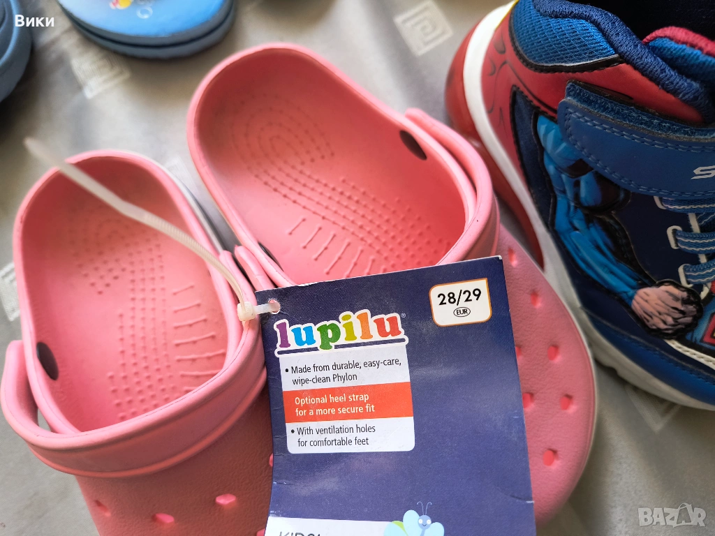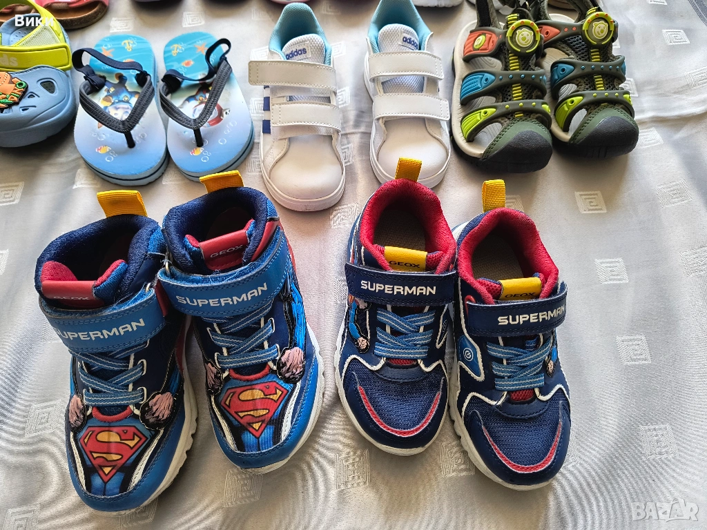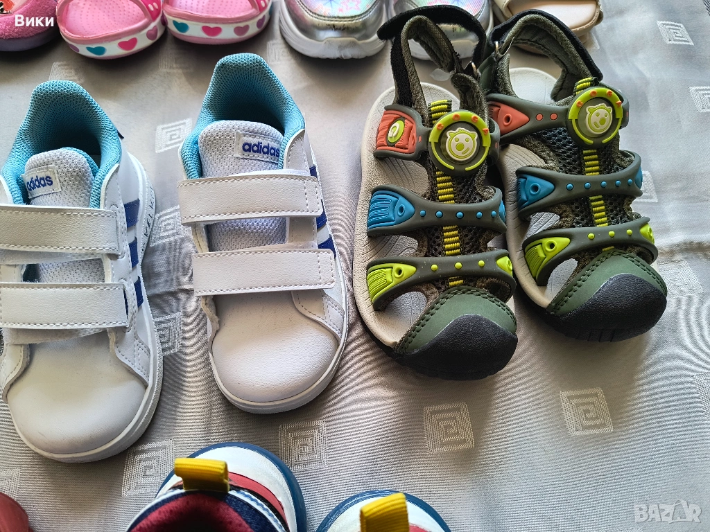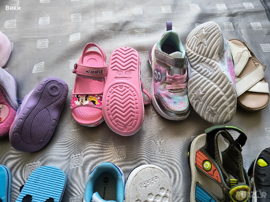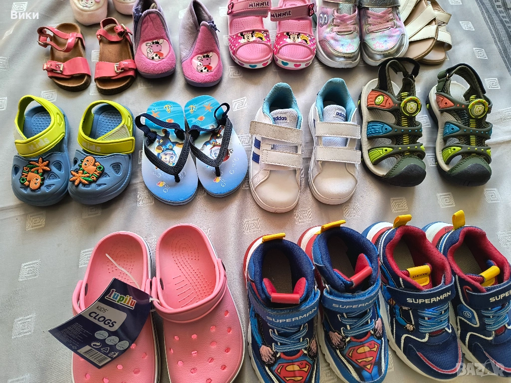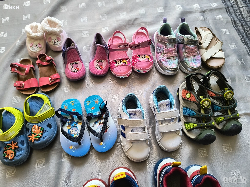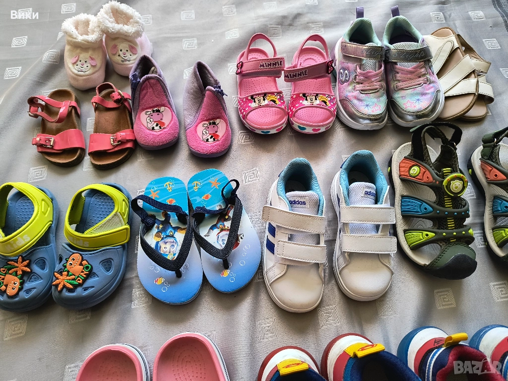 Марки и модели: Присъстват обувки от марки като Geox, Adidas, Crocs и Lupilu.