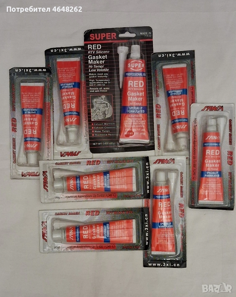Продавам червен термоустойчив силикон за гарнитури. Издържа на висока температура до 343 градуса. Подходящ за автомобилни двигатели и уплътнения.