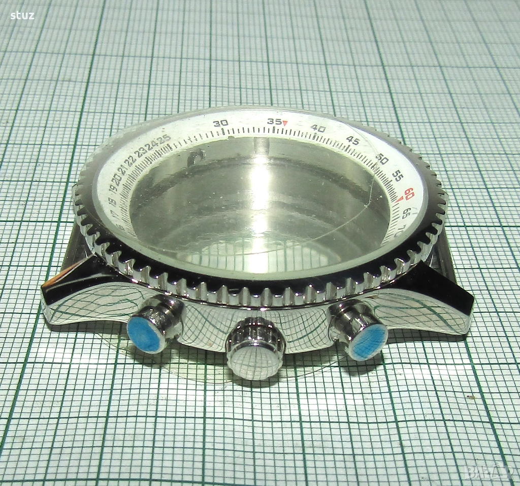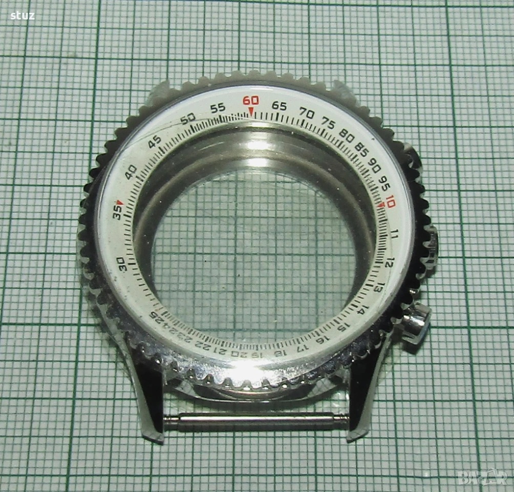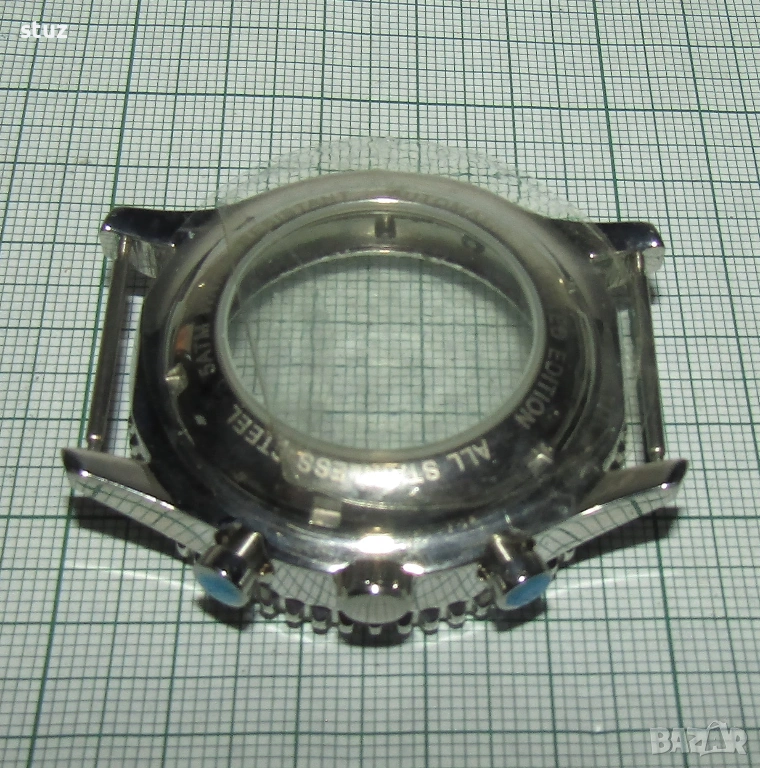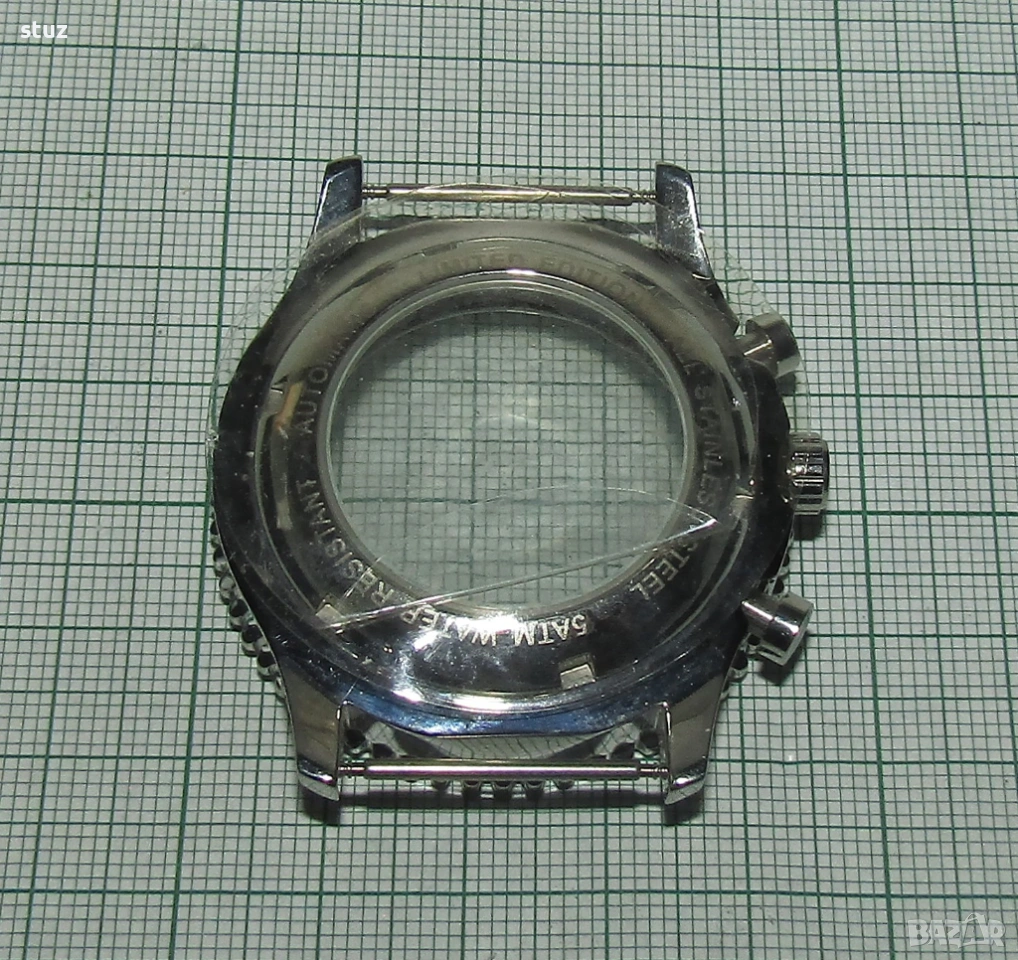 Касата е стоманена, нова, окомплектована с лицево кристално стъкло, заден капак също с кристално стъкло, бутони и коронка.
