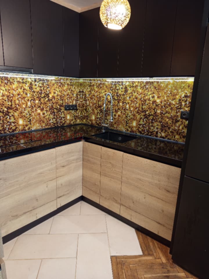 Поръчкова кухня: Гранитен плот, уреди от най-висок клас и LED осветление.