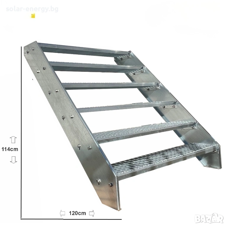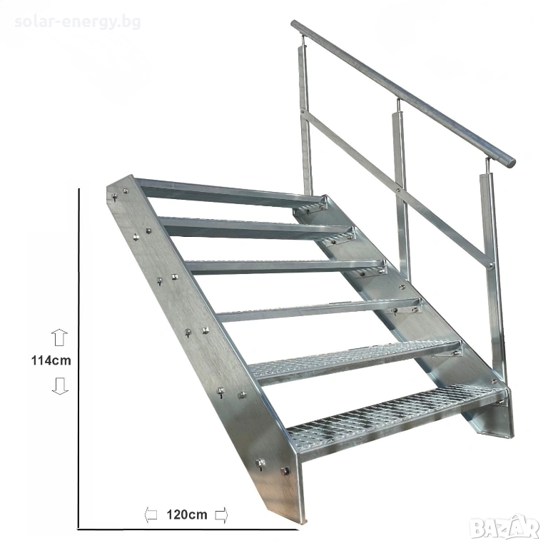 Предлагаме висококачествено метално стълбище с площадка и 6 стъпала, подходящо за външни и индустриални приложения.