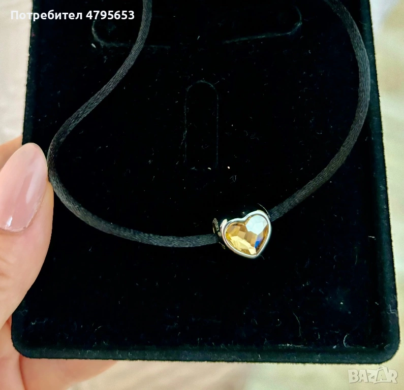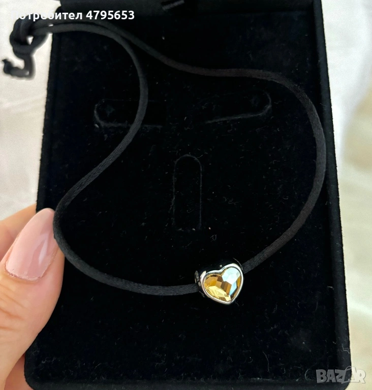 Висулка Swarovski, жълто сърце, с две лица, има камъни и от двете страни. Нова сатенена връвчица. В отлично състояние без никакви забележки. Не е носена. Кутията не е включена!