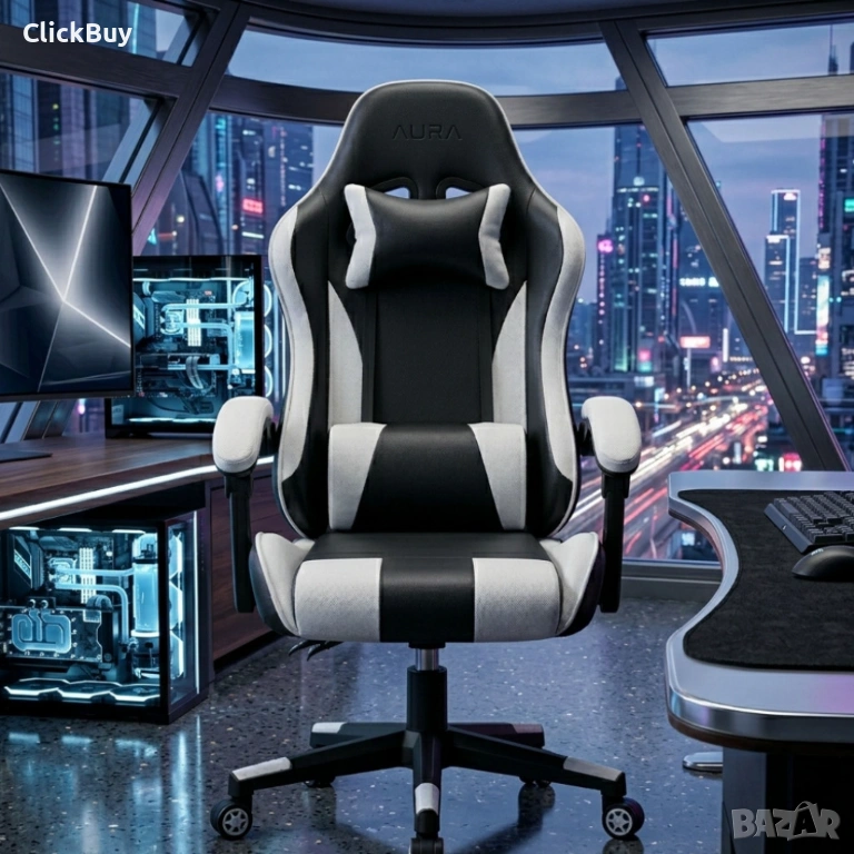 Ергономичен офис и геймърски бял стол – Максимален комфорт за гърба и врата, регулируем → Обява 54235760