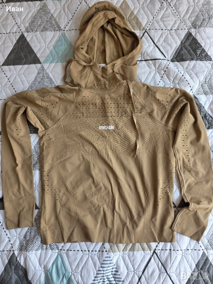 уникално спортно горнище джимшарк с качулка и фешън дантелени прорези. истински трепач за фитнес кифли, с него със сигурност няма да останете незабелязани. размер S