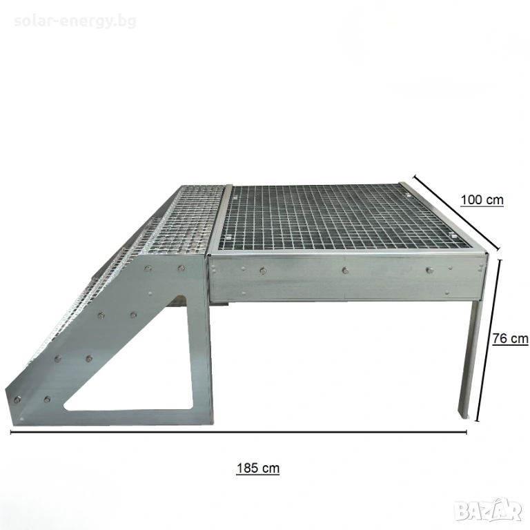 Конструкцията е свободностояща (самоносеща), без необходимост от закрепване към стена, което позволява гъвкав монтаж на различни терени.