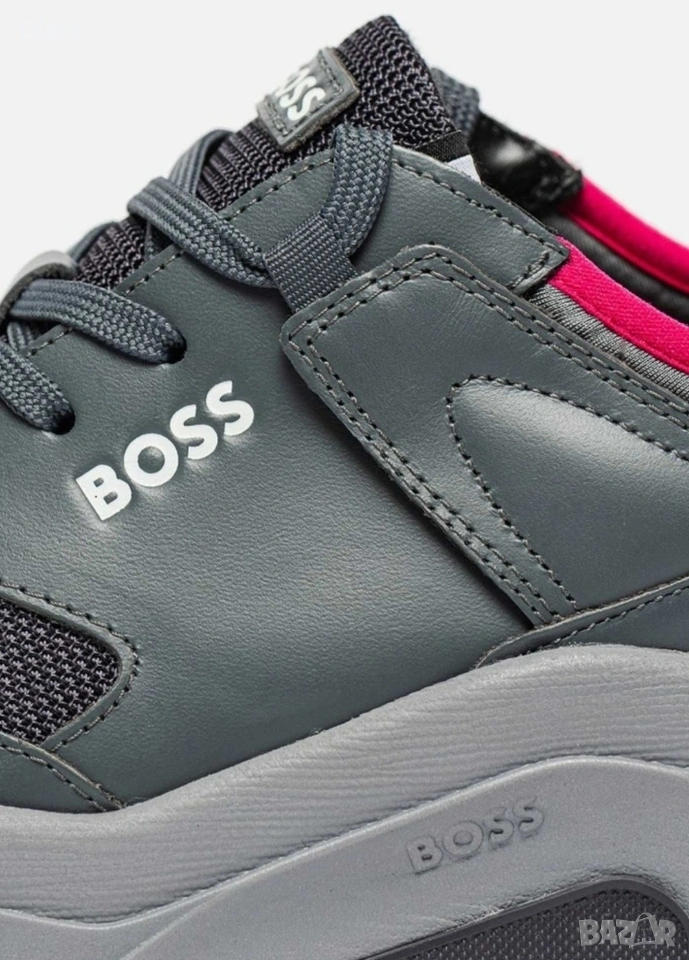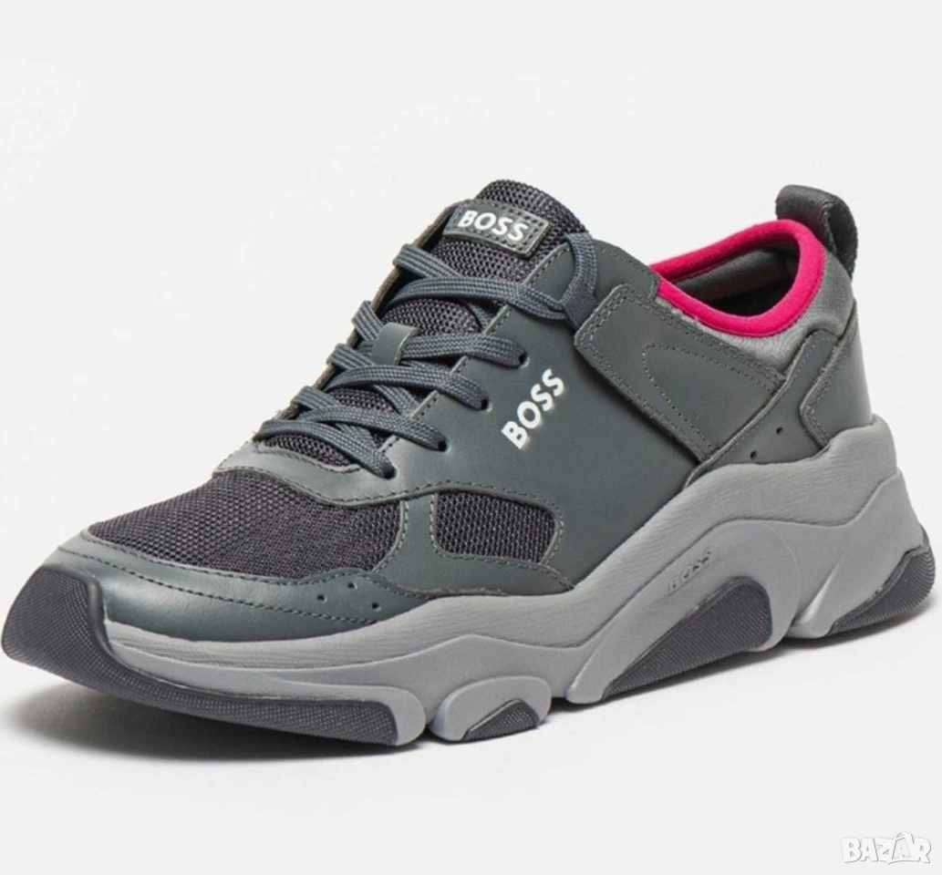 Мъжки кожени спортни обувки Boss Asher с мрежести детайли → Обява 54236596