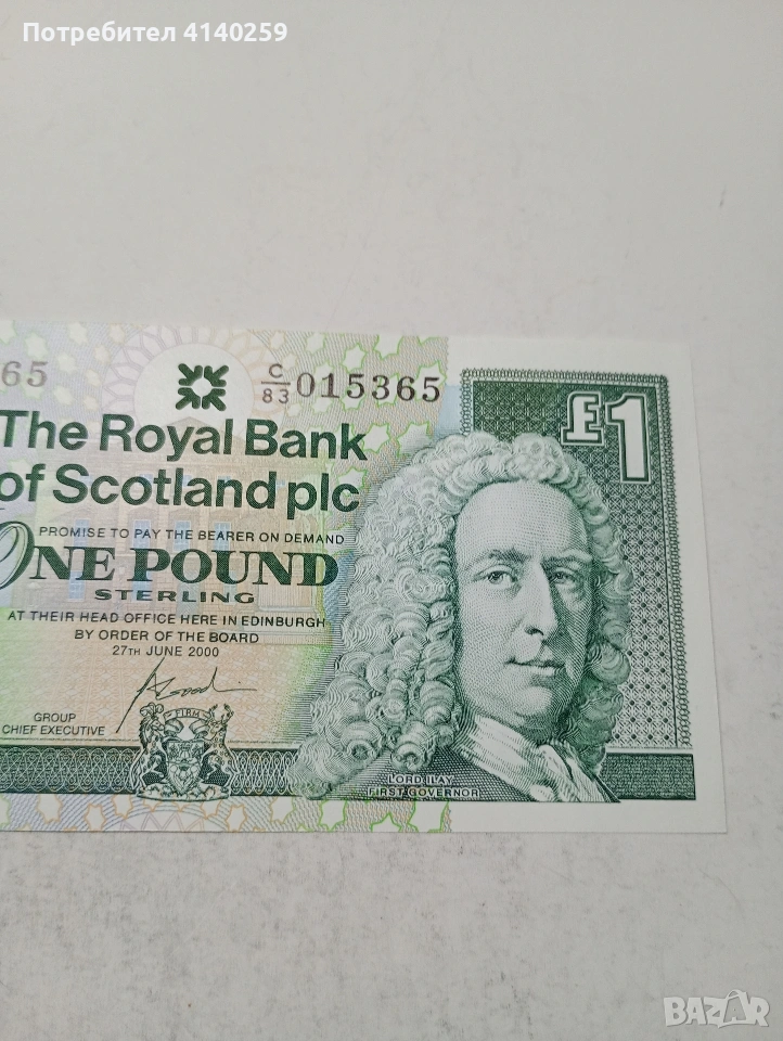 ШОТЛАНДИЯ БАНКНОТА 1 ПАУНД 2000 Г СЪСТОЯНИЕ НОВО ПОЛУЧАВАТЕ СНИМАНАТА БАНКНОТА РАЗГЛЕДАЙТЕ ДРУГИТЕ МИ ОБЯВИ ДА КОМБИНИРАТЕ ДОСТАВКА ЕКОНТ ЗА ВАРНА ЛИЧНО