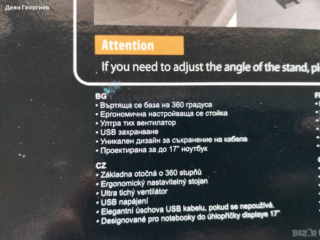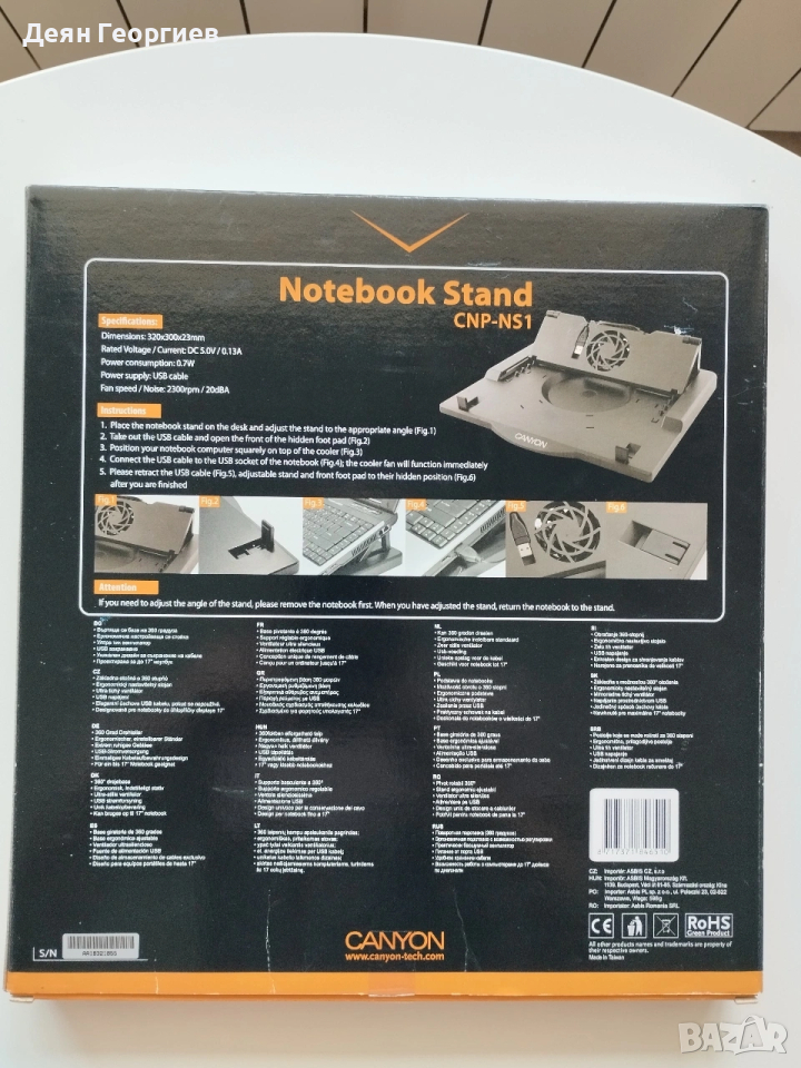 Продавам охлаждаща поставка за лаптоп CANYON CNP-NS1 - 17'', снимка 1 - Лаптоп аксесоари - 54236963 Продавам охлаждаща поставка за лаптоп CANYON CNP-NS1 - 17'', снимка 2 - Лаптоп аксесоари - 54236963 Продавам охлаждаща поставка за лаптоп CANYON CNP-NS1 - 17'', снимка 3 - Лаптоп аксесоари - 54236963 Продавам охлаждаща поставка за лаптоп CANYON CNP-NS1 - 17'', снимка 4 - Лаптоп аксесоари - 54236963 Продавам охлаждаща поставка за лаптоп CANYON CNP-NS1 - 17'', снимка 5 - Лаптоп аксесоари - 54236963 Продавам охлаждаща поставка за лаптоп CANYON CNP-NS1 - 17'', снимка 6 - Лаптоп аксесоари - 54236963 Продавам охлаждаща поставка за лаптоп CANYON CNP-NS1 - 17'', снимка 7 - Лаптоп аксесоари - 54236963 Продавам охлаждаща поставка за лаптоп CANYON CNP-NS1 - 17'', снимка 8 - Лаптоп аксесоари - 54236963 1/8