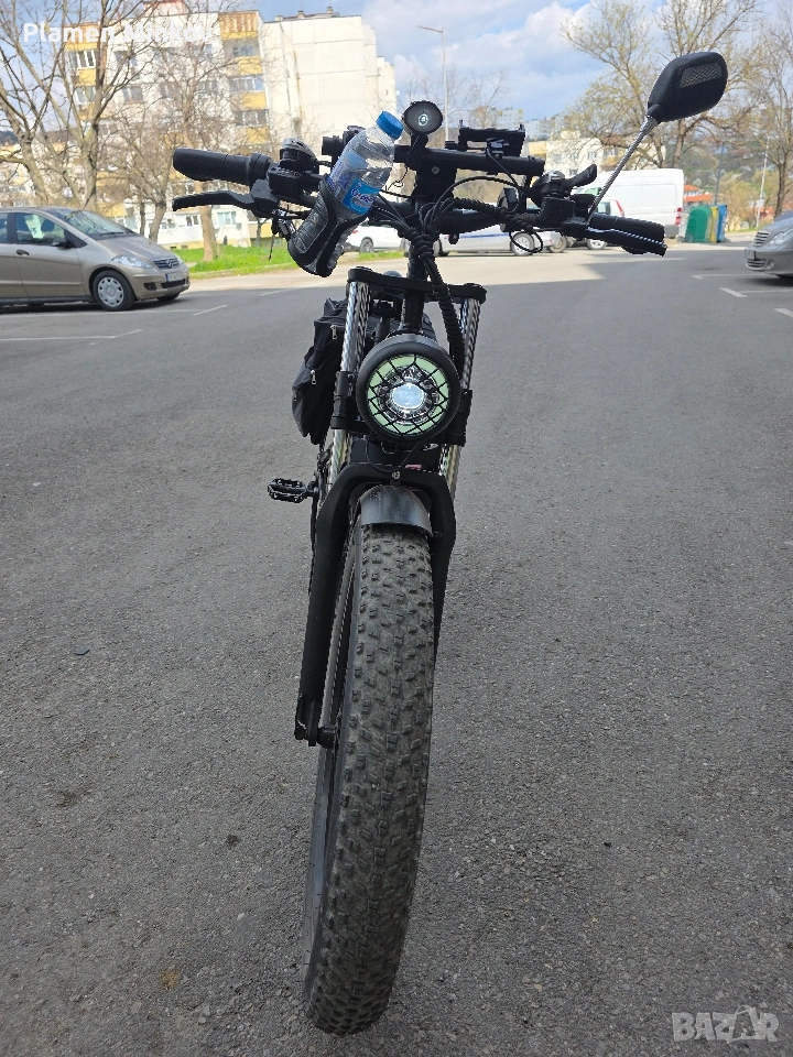 Сгъваем, електрически велосипед Ridstar. - Курбел, дерайльор, спирачки-Shimano; - 21 скорости (единствен на пазара); - Двойни дискови спирачки; - 26" капли; - 4" дебели гуми; - Батерия 1500V, 900W, 23A/h; - Максимална скорост 55Km/h; - Максимален пробег на ток 60Km; -Максимален пробег с подпомагане 90 Km; –Алармена система; - Аксесоари: Компютър, допълнителен преден фар с клаксон, мигачи с дистанционно управление от кормилото, зимна и лятна каска, ръкавици, стойки за мобилен телефон и шише за вода, чанти за багаж, инструменти. Продавам го поради отпаднала необходимост от ползване. Възможен коментар по цената.