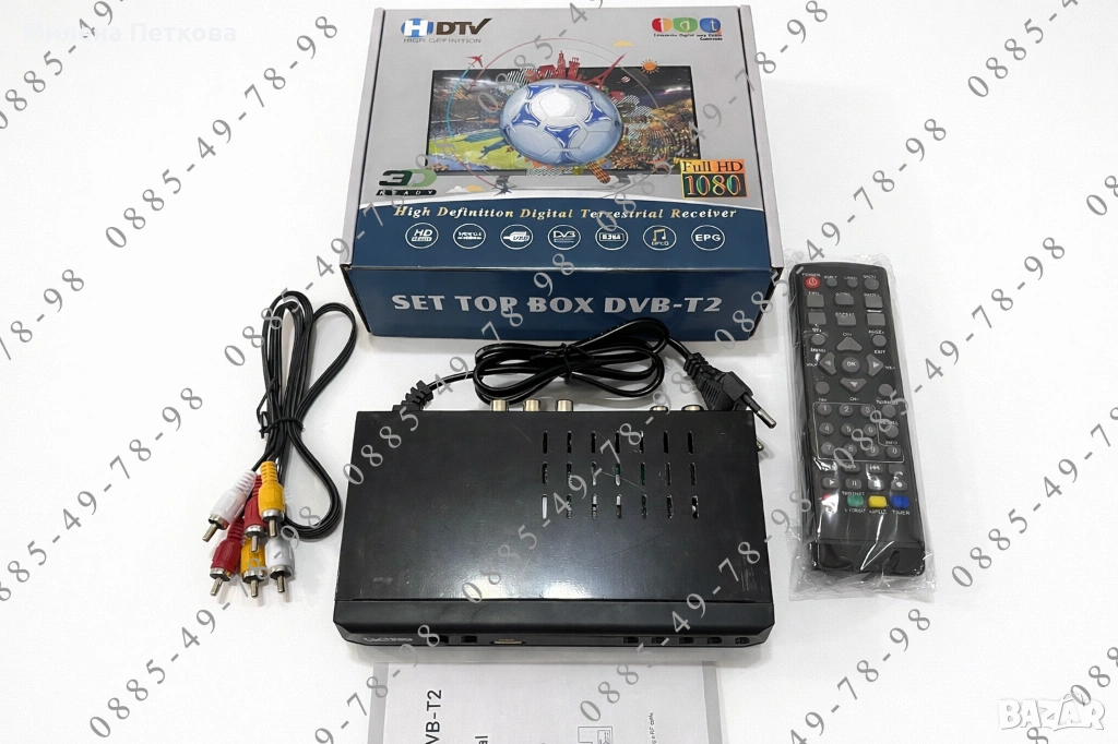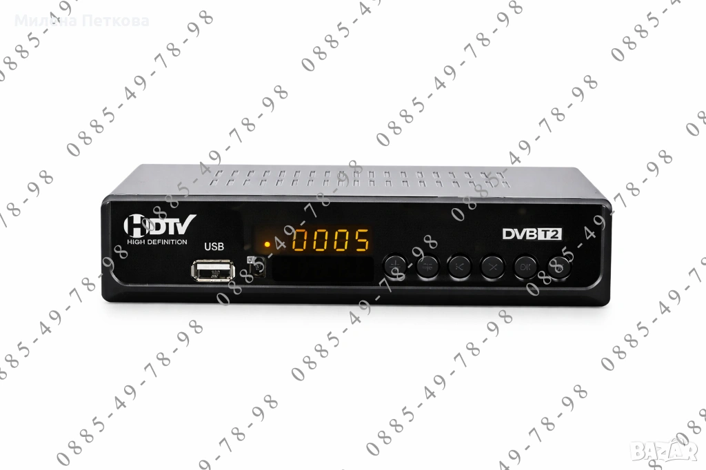 Цифров Full HDTV DVB-T2/Т приемник за гледане на безплатна цифрова ефирна телевизия на по-стари телевизори или монитори без вграден съвременен декодер, който не поддържа последните стандарти за цифрова ТВ. Устройството приема и декодира сигнала, след което подава декодираните канали към телевизора. Поддържа до 2000 канала. Устройството може да се свърже към ИНТЕРНЕТ, може да гледате клипове и в YouTube. В комплекта има дистанционно управление с кето си превключвате каналите. Подходящо е за дома, вилата, хижата както и всяко друго или отдалечено място. Достатъчно е само да имате ток на мястото. Нищо друго не Ви трябва, за да гледате телевизия. НИКАКВИ РАЗХОДИ - 0 Евро на месец.
