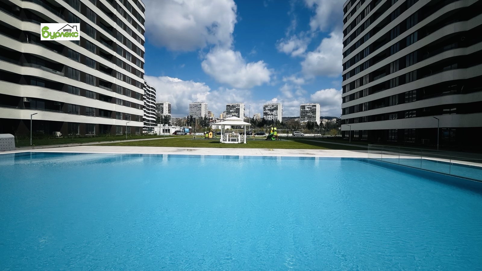Жилището е част от жилищен комплекс Сити парк Юг, с контролиран достъп, видеонаблюдение, красива зелена градина, басейн с топла вода и отлично поддържани общи части.