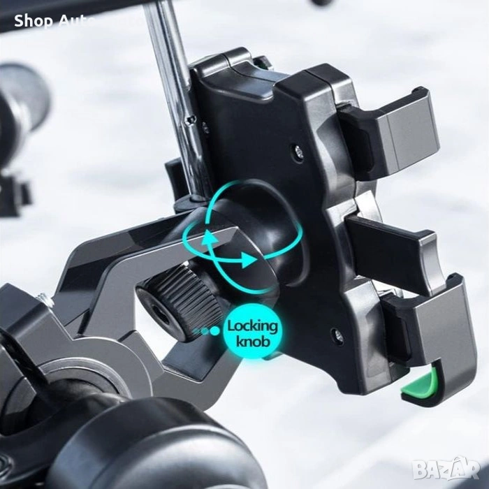 Стойката разполага с регулируем механизъм, който позволява лесно поставяне и стабилно фиксиране на различни по размер телефони. Монтажът е бърз и лесен, като е съвместима с повечето велосипедни кормила.