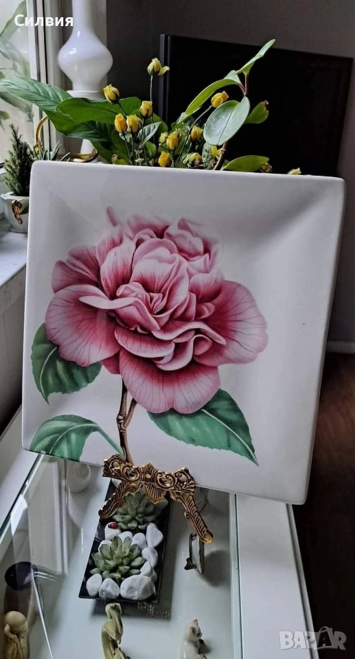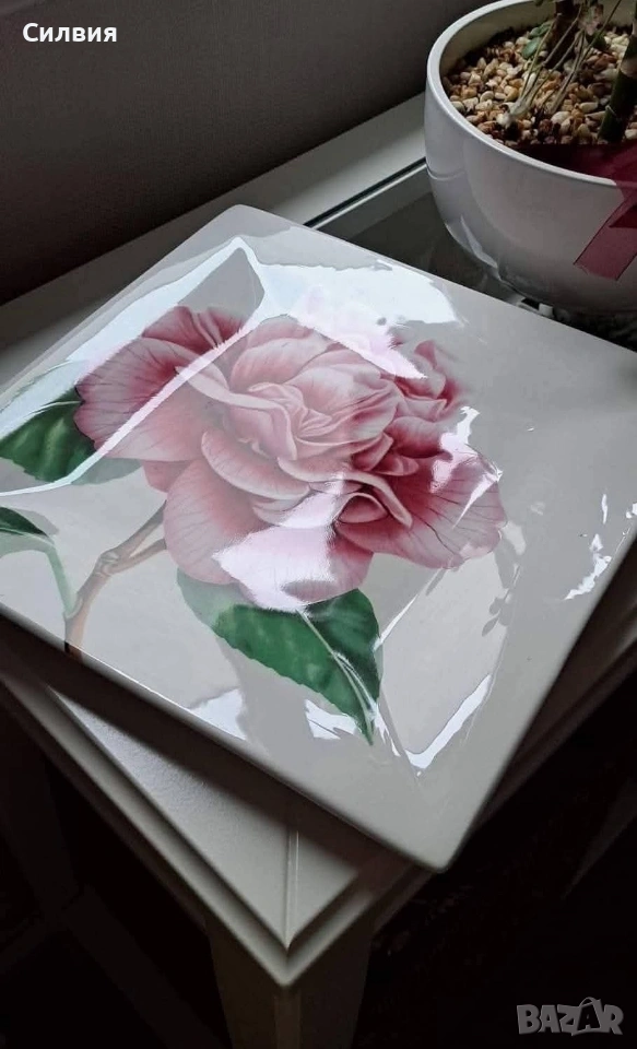 Красиво голямо плато VARM CERAMICA Формата е квадрат - 27,5см. Това голямо италианско плато е с ръчно рисуван декор. Има малка забележка. Чукнато в единия край (вината е моя) вижте последната снимка. Идеално е да се използва като чиния за сервиране на антипасти, сандвичи или друго. ღꕥ⊱❥─❥⊱💜✿⊱╮☆♪ ░L░o░V░e░❥─❥⊱💜✿⊱╮💜☆♪ღ💜ღ꧂ღ