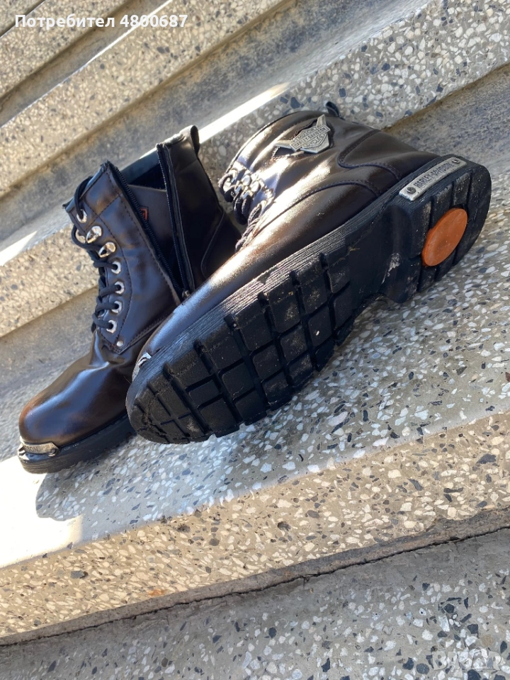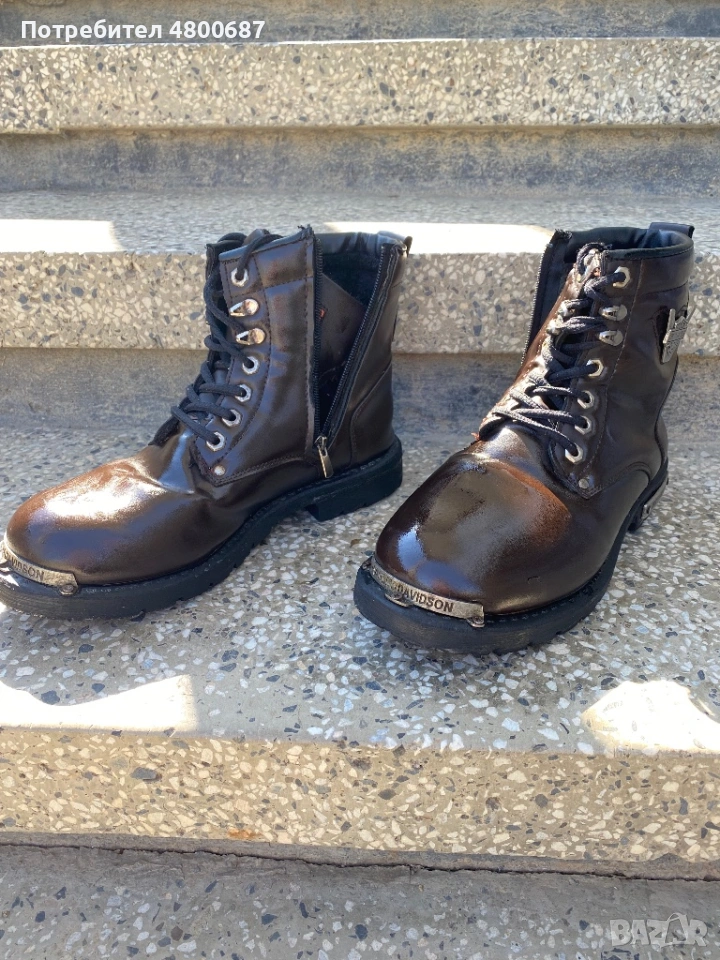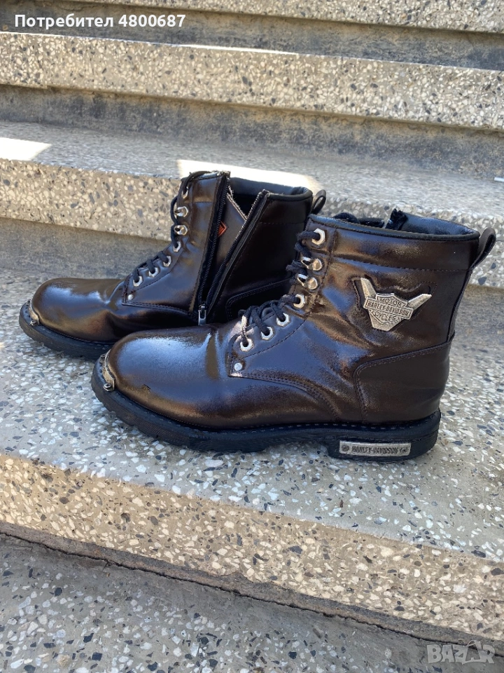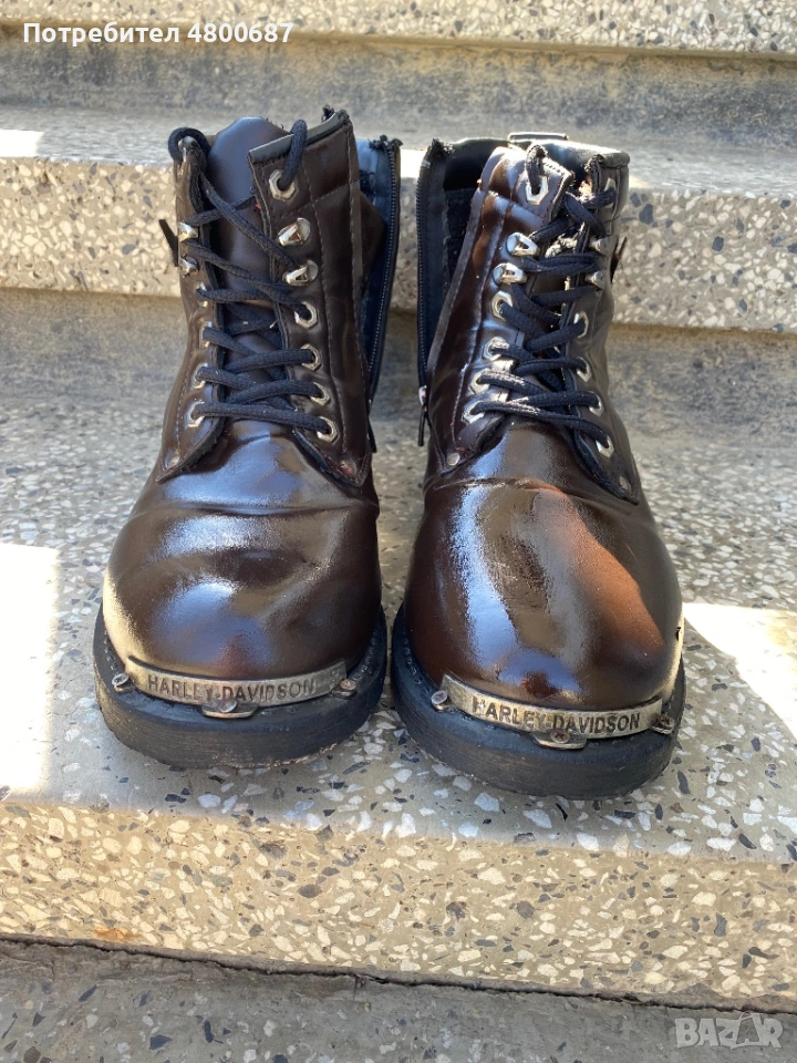 Продавам кафяви кобинки Harley-Davidson от естествена кожа. Обувките са втора употреба и имат леки забележки, нормални за носена обувка, но са много здрави и напълно здрави технически.
