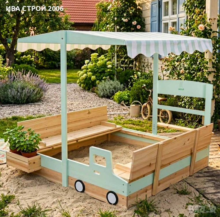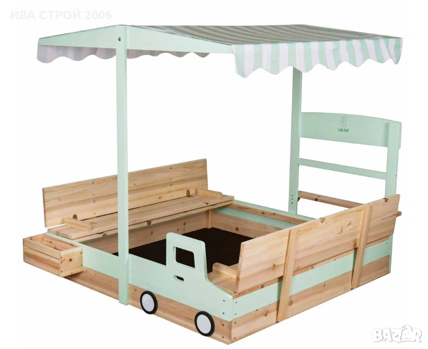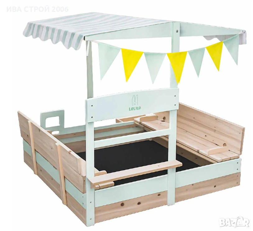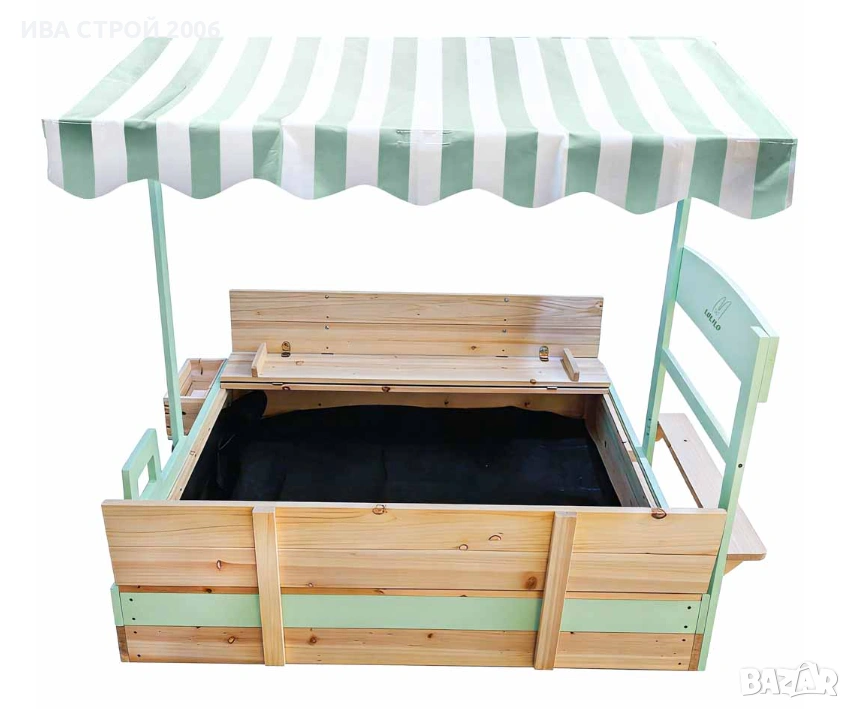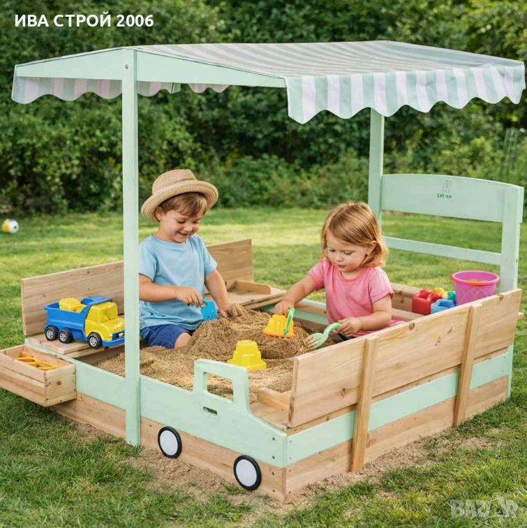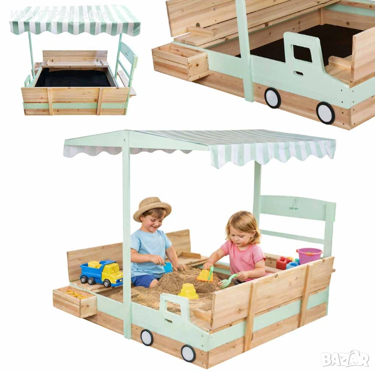 Премиум детски пясъчник с въртящ се на 360° навес и заключващи се пейки – безопасно и удобно решение за игра на открито. Идеален за двор, градина или вила.