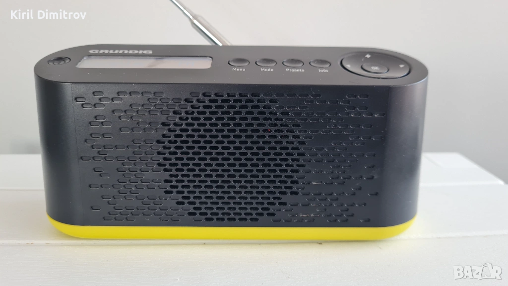 Компактно и стилно радио Grundig Music 45 в черен цвят с жълт акцент. Отличен прием и много добър звук за размера си – идеално за дома, офиса или път.