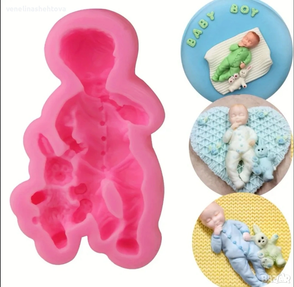 Бебе момче boy със зайче силиконов молд форма за гипс сапун смола фондан за декорация на торта → Обява 54237689