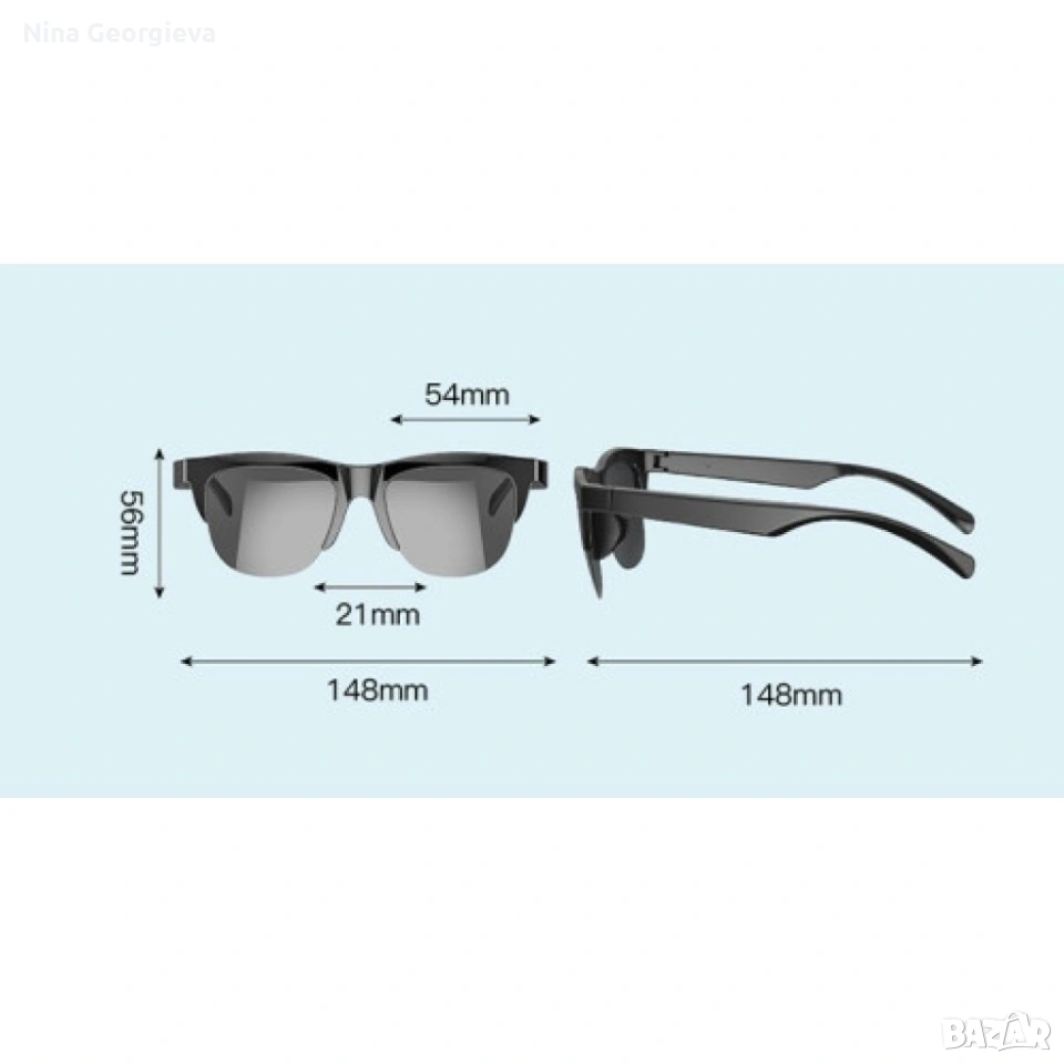 Вградени колонки: Колонките, интегрирани в дръжките на очилата, осигуряват качествено звучене и комфортно слушане на музика, без да е необходимо използването на слушалки.