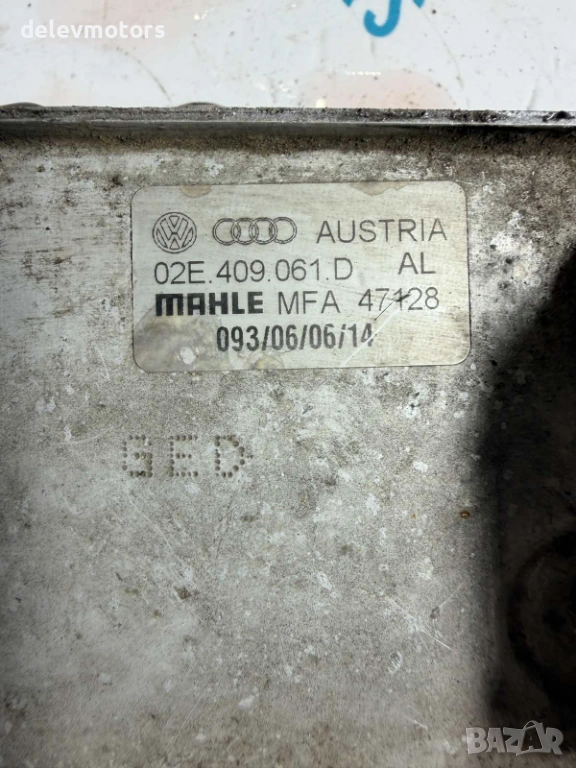 02E409061D масло охладител от Vw Golf R 4motion 2018г, двигател CJX 2.0 TFSI 300 кс. в автоморга Delev Motors, между с. Каменар и с.Куманово гр. Варна.