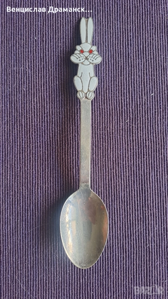 Рядко срещана по нашите ширини ,Руска сребърна лъжичка с емайл.С любимия заек на децата.