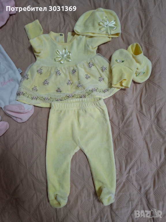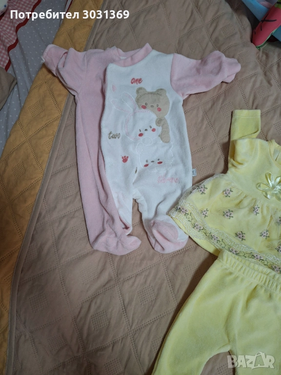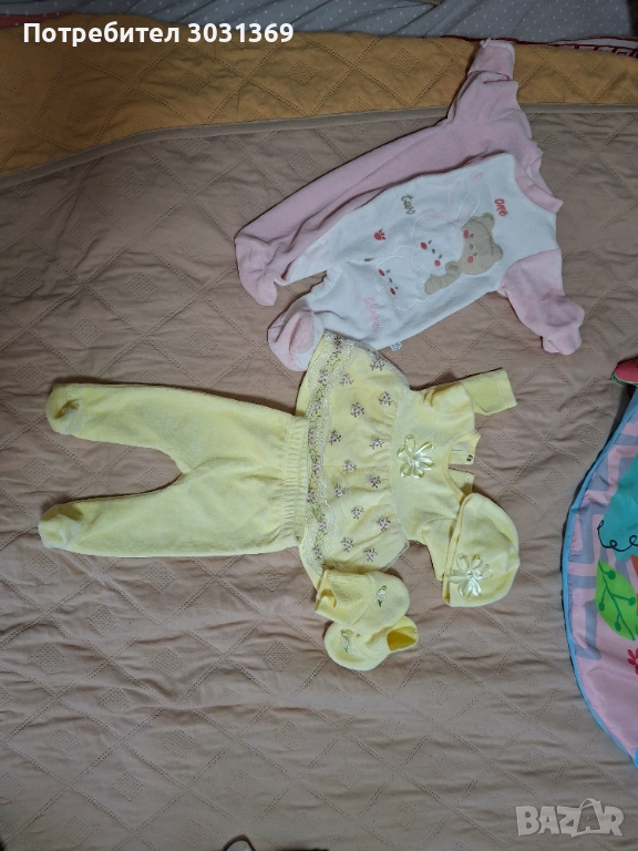 Лот от бебешки дрехи. Жълтото е подходящо за повод, погача, изписване. Не са обличани изобщо.