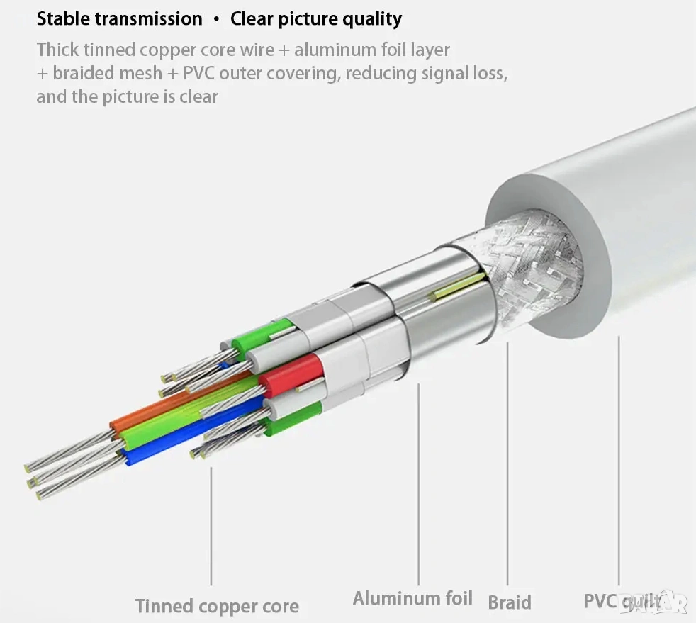 Подходящ за използване с лаптопи, телевизори, монитори и проектори, като осигурява стабилен сигнал и отлично качество на картината.