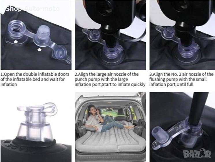 Създадено за още по-голямо удобство по време на пътуване, това надуваемо легло за автомобил предлага разширена площ и отлична стабилност. Перфектно решение за двама души – идеално за къмпинг, дълги пътувания или почивка директно в колата.