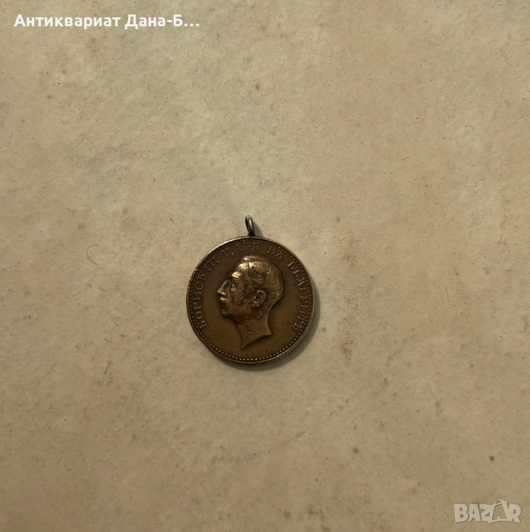 №17 Автентичен възпоменателен медал (жетон) с лика на Н.В. Борис III. Предметът е ценен образец от Третото българско царство, носещ духа на една значима епоха от българската история. Медалът е с монтирано ухо, което позволява да бъде носен или окачен като част от експозиция.