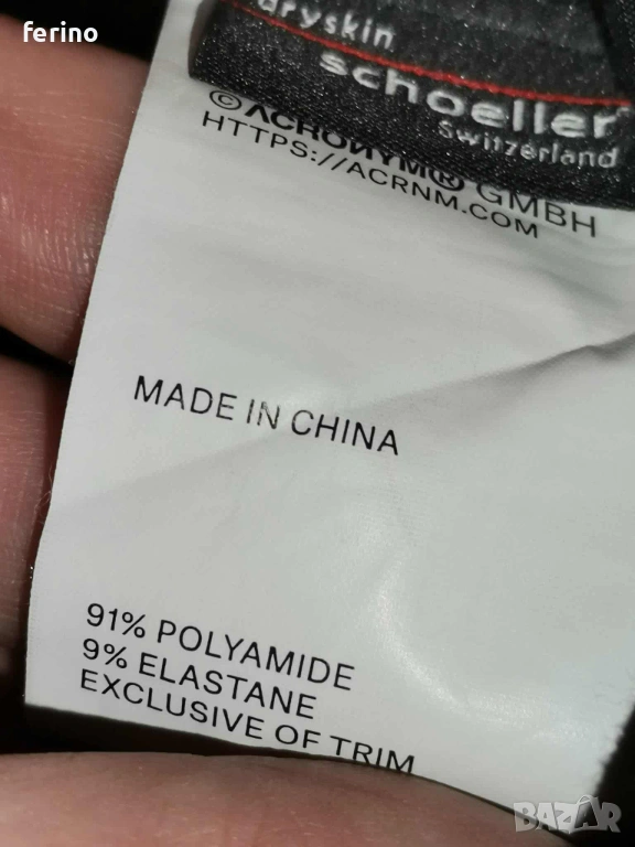 Материя (Schoeller Dryskin): Тази материя има специфична текстура и еластичност. Репликите често използват евтин полиестер, който лъщи повече или е по-груб на допир.