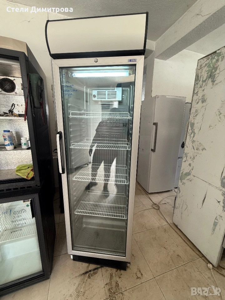 Хладилни витрини,втора употреба,рециклирани,сервизирани,с гаранция 6 месеца,370 литрови,работна температура от 2 до 8 градуса,с вентилатор,лед осветление,4 рафта,произведени от UGUR- Турция.