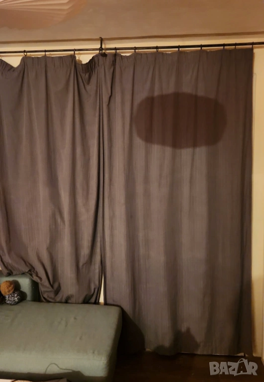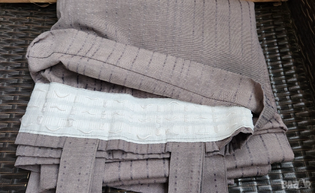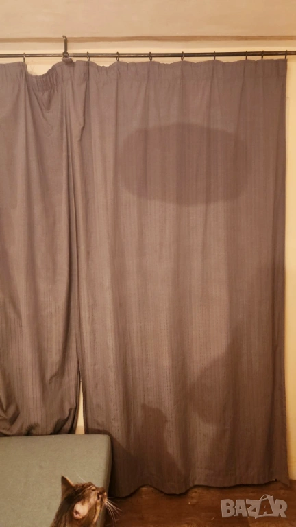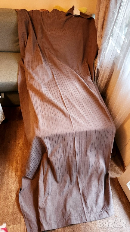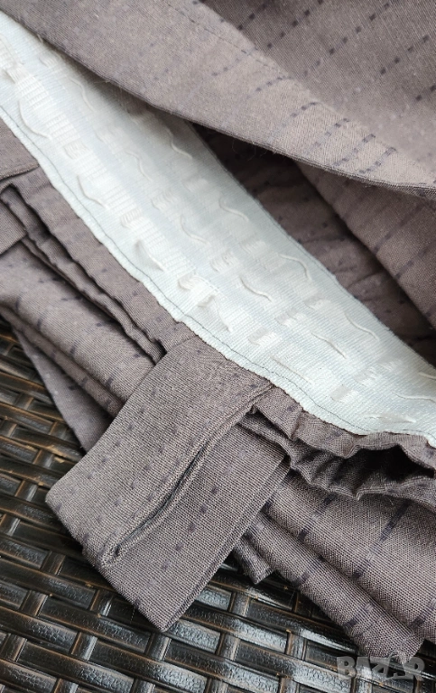 Комплект пердета Jysk. Сив цвят с фин вертикален десен. Материята е плътна, 100% памук, не пропуска светлина. Подходящи за хол, спалня или кухня.