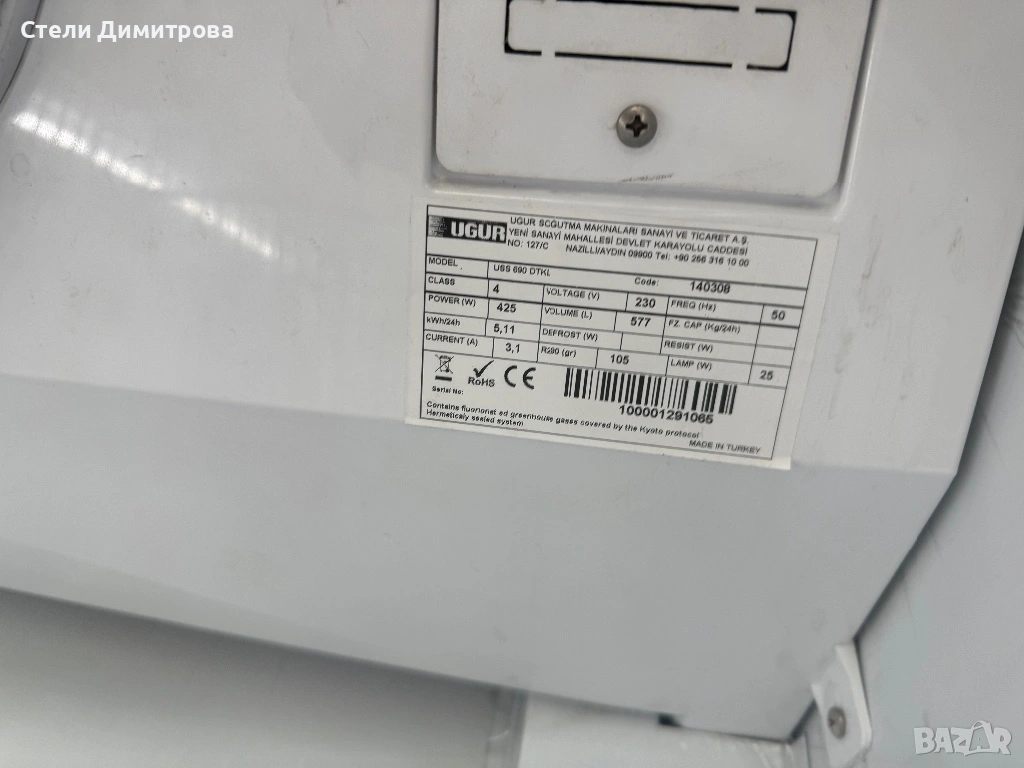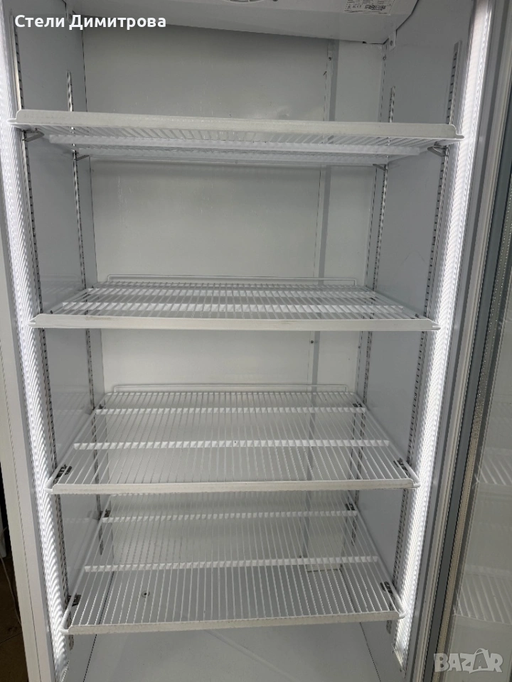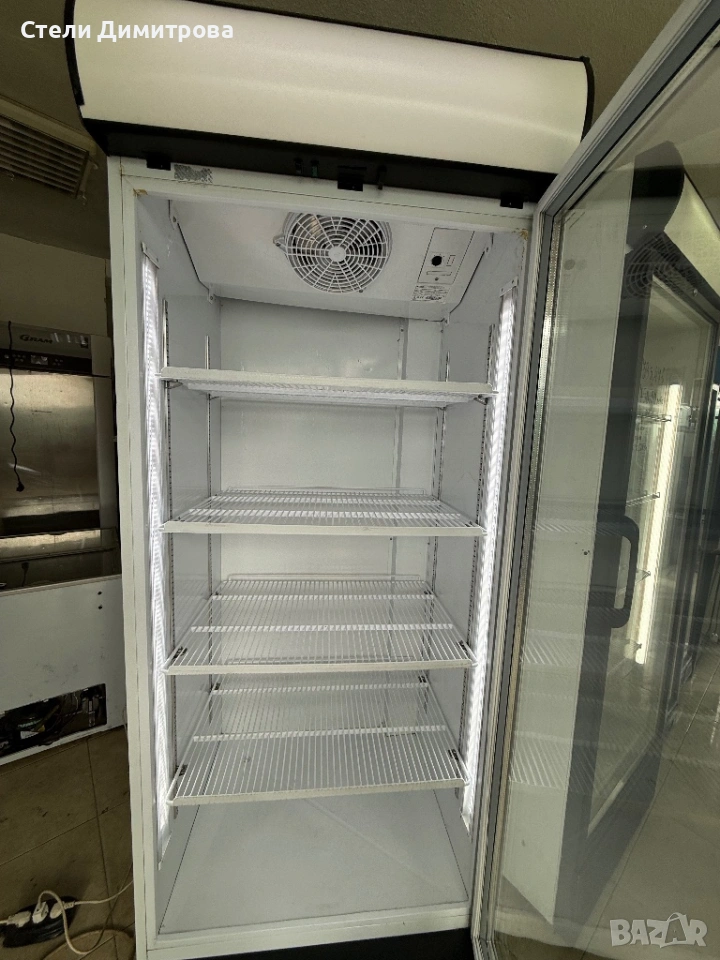 Хладилна витрина UGUR, втора употреба,отлично техническо и козметични състояние,6 месеца гаранция,рециклирани,с вентилатор,с лед ленти осветление,560 литра,температура на работа от 2 до 6 градуса,4 рафта,подходяща за тави 60/40,подходяща за напитки,млечни продукти,месни продукти,сладарски изделия и др.