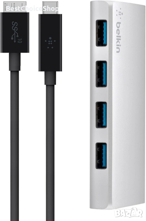 Памет: 4-портов USB 3.0 Belkin сребрист, кабел USB C- Micro-B 3.1 кабел