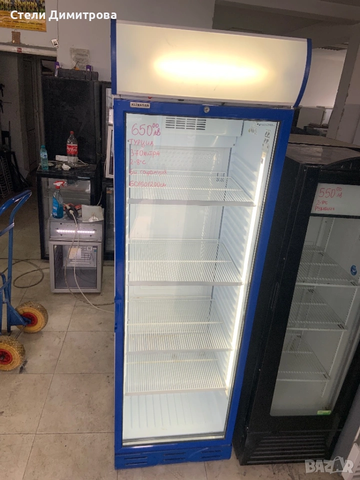 Хладилни витрини,много запазени,втора употреба,отлично техническо състояние,произведени от KLIMASAN - Турция,370литрови,с лед ленти оветление,вентилатори,нови уплътнение,нови рафтове,температура на работа от 2 до 8 градуса,Моделите са 2022-2023 година,цената е с ДДС И ФАКТУРА.
