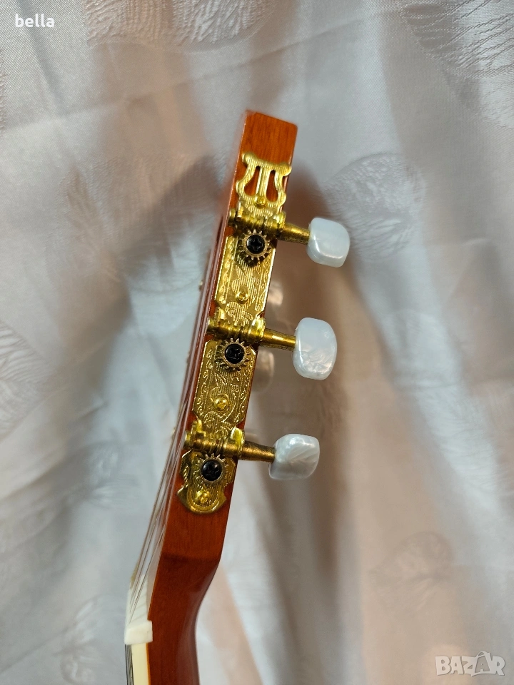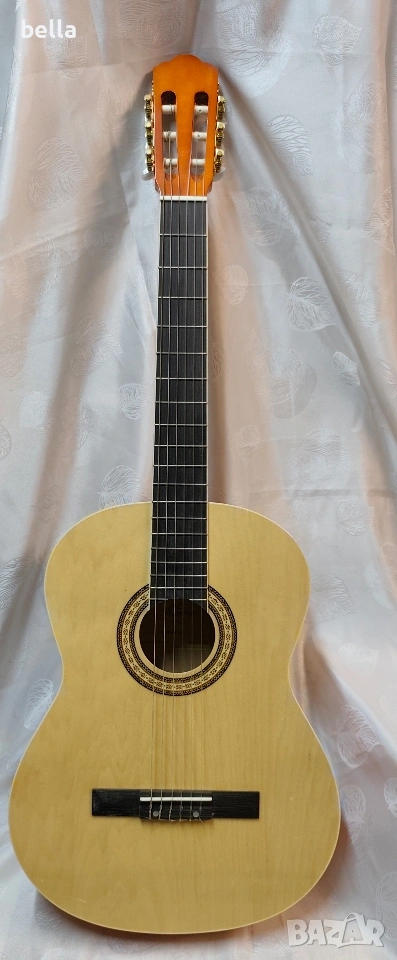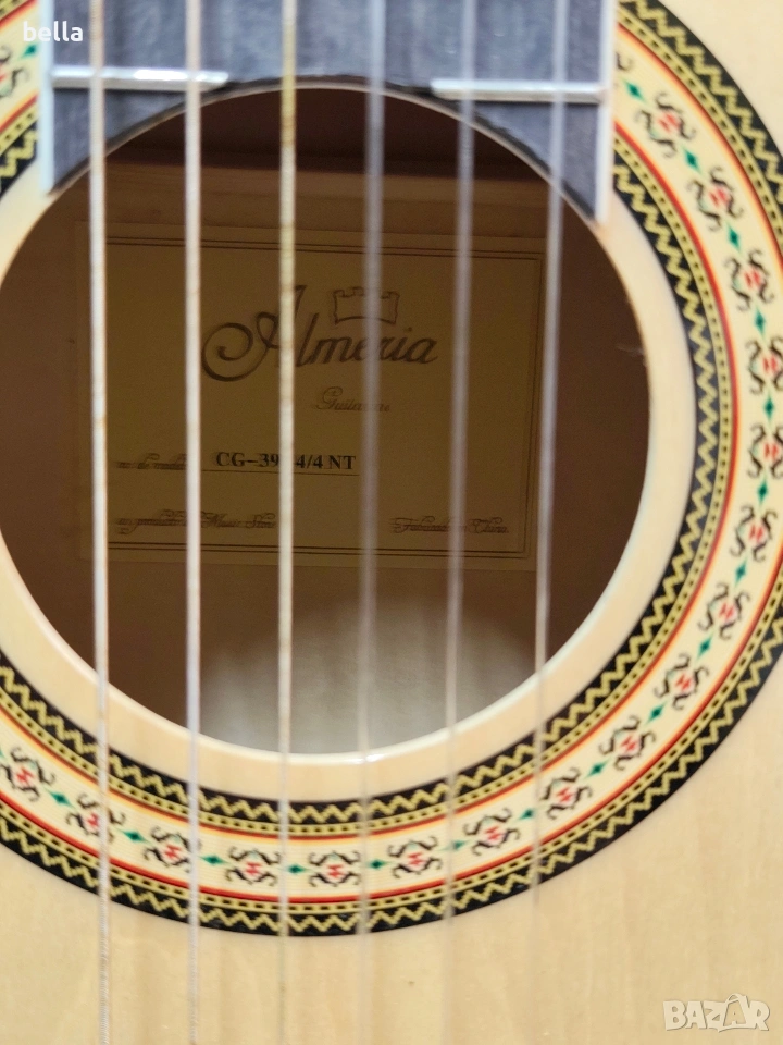 Класическа китара Almeria CG-390. Моделът е широко признат като един от най-добрите варианти за ученици и любители, поради своята надеждност и качествена изработка. Китарата предлага мек и ясен звук, типичен за испанския дизайн.