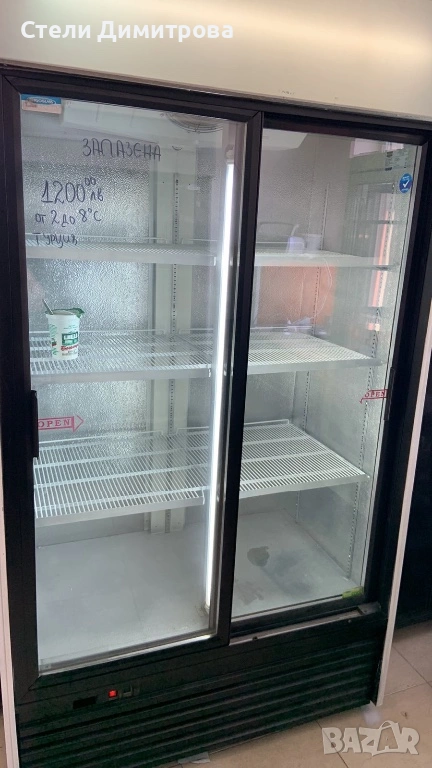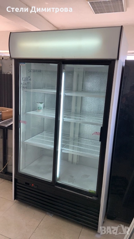 Хладилна витрина втора употреба,в перфектно техническо състояние,перфектно плъзгане за вратите,втора употреба,с гаранция 6 месеца,в много добро козметично състояние.