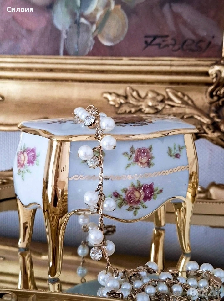 Това не е просто място за Вашите пръстени и огърлици. Това е интериорен акцент, който носи със себе си атмосферата на френските замъци. Идеална за подарък на дама с изтънчен вкус или за попълване на лична колекция от висок клас.