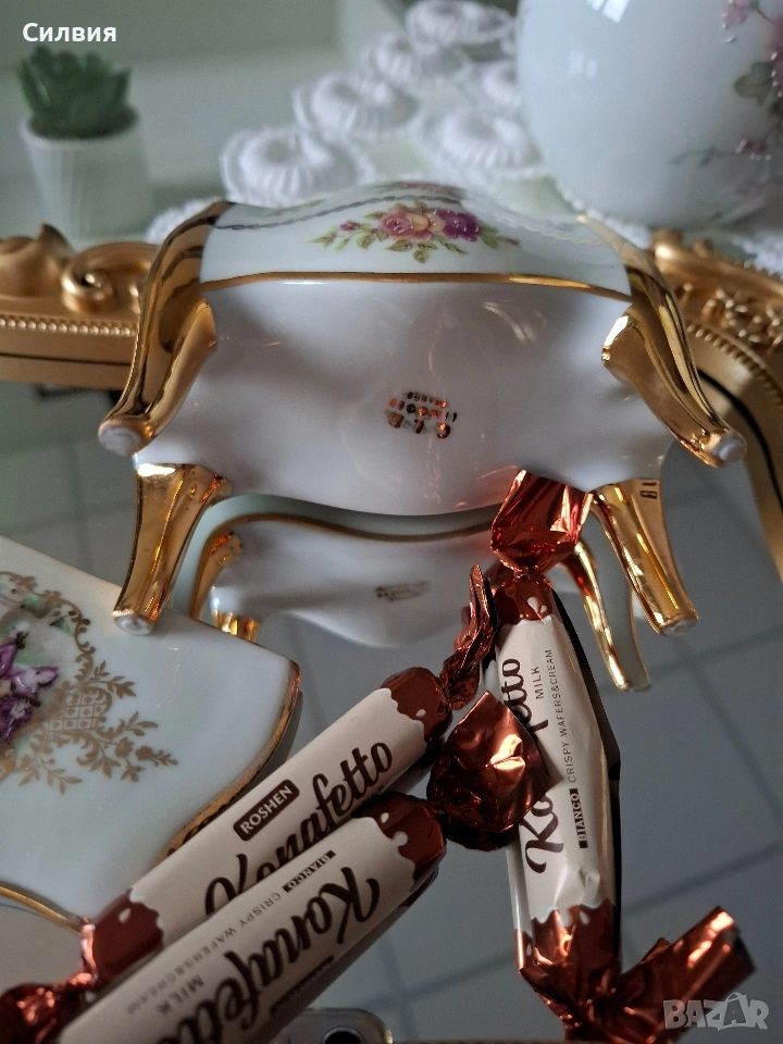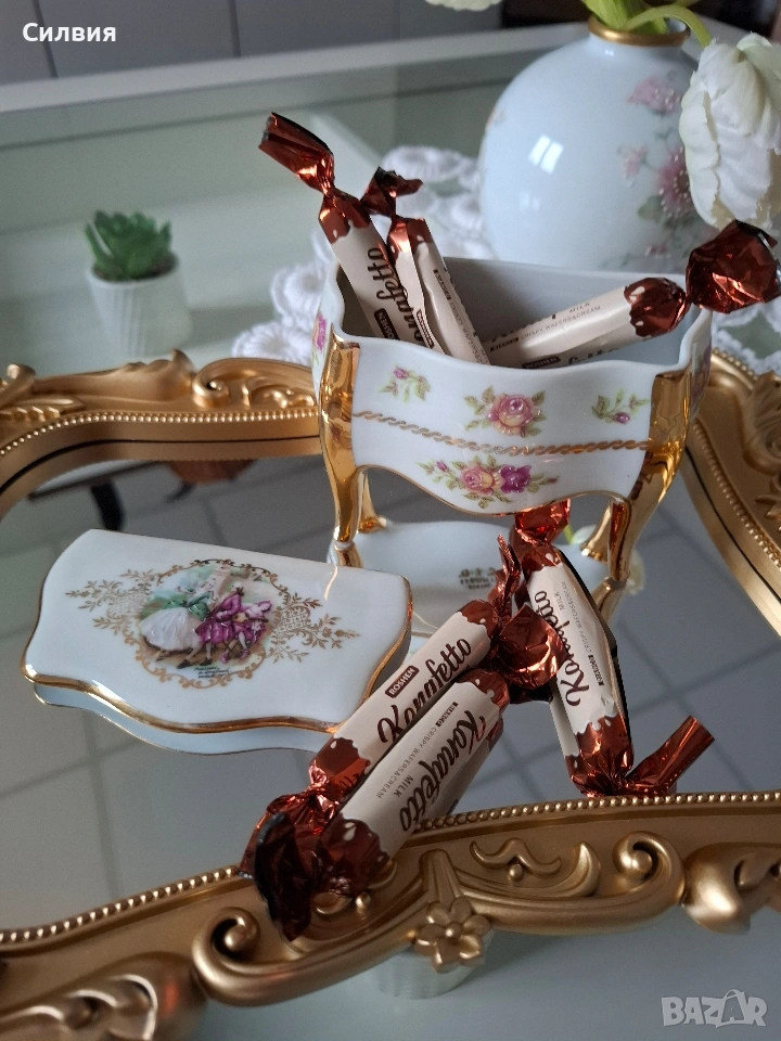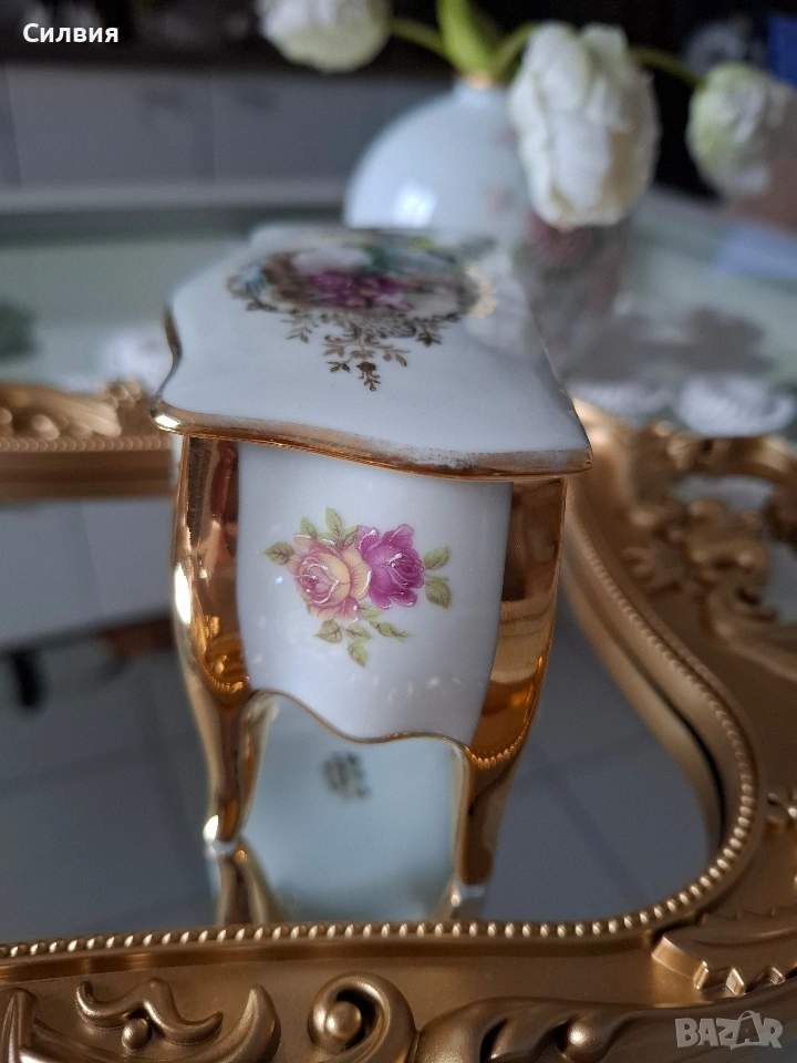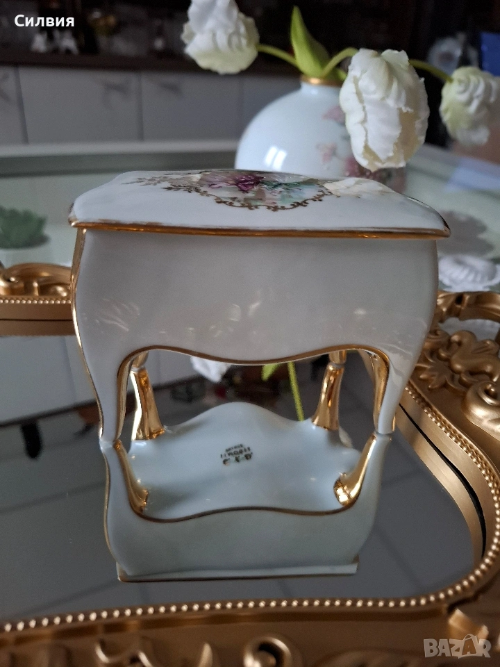 Изящна порцеланова кутийка за бижута или дребни предмети.