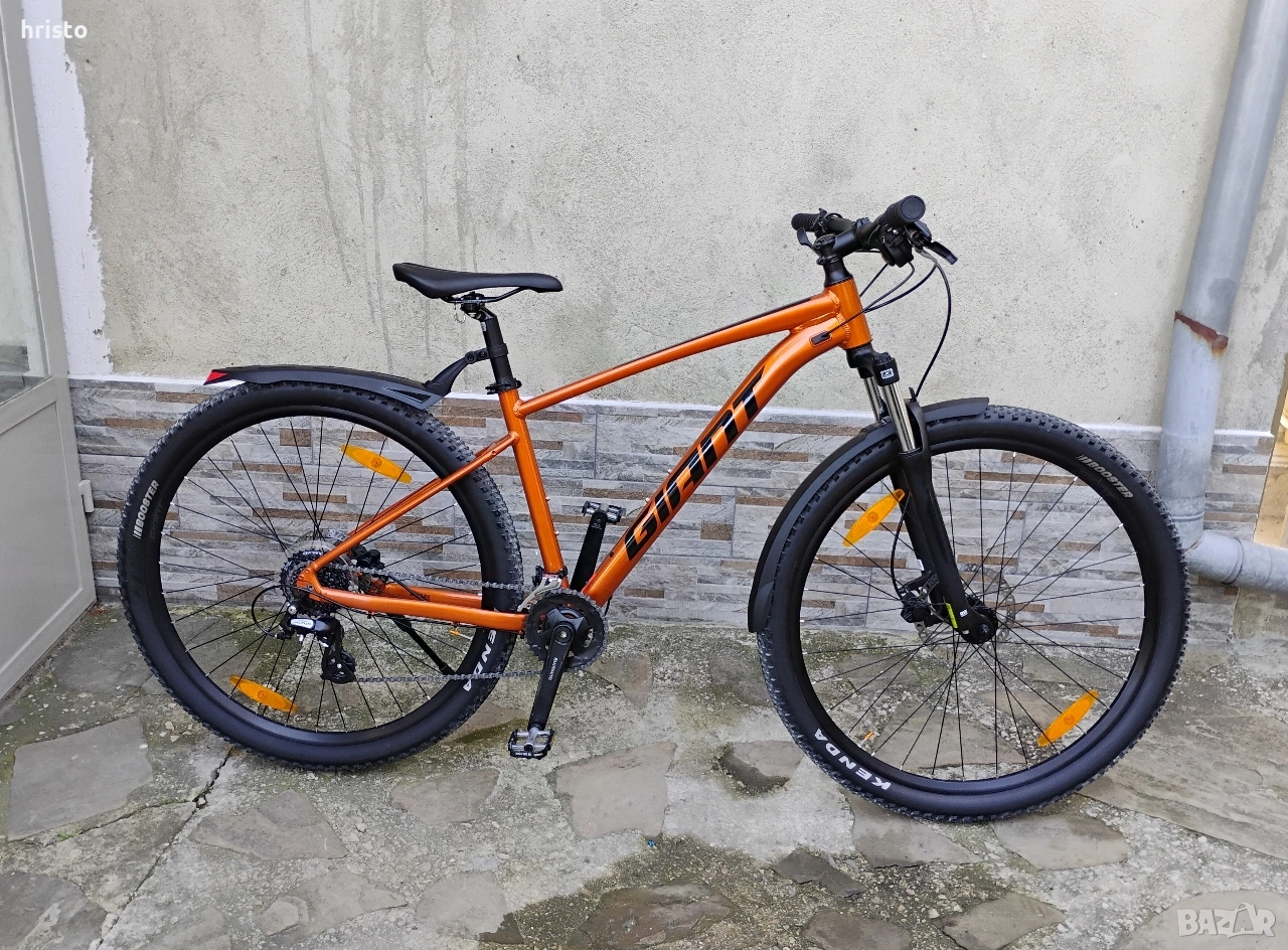 Здравейте, предлагам ви нов велосипед GIANT TALON 3, 29 цола закупен преди около година но каран само няколко пъти. Размера на рамката е ,М' (44 см) и е подходящо за ръст 1.60-1.80 м. Търся му около 430 евро, а в магазина цената му започва от 660 евро нагоре. Нивото му е на добро ниво, а за марката няма какво да коментираме ,защото е една от най-големите в бранша. Всичко по велосипеда е алуминиево, като започнем от рамката с интегрирани жила в нея, амортисьорната вилка SR SUNTOUR 100 MM, кормило,лапа,чашка, главини SHIMANO, двустенни капли GIANT ,курбели SHIMANO и т.н. освен това велосипедът е с хидравлични дискови спирачки TEKTRO, палцови команди и скорости 2×8. Допълнително са монтирани степенка,звънче и калници. Реално давам колелото с 230 евро надолу, а то е в перфектно състояние. Намира се в град Варна, все пак е възможен лек коментар на цената
