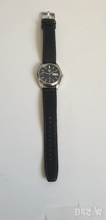 Мъжки часовник SEIKO 5, Automatic 7s26А, 21 jewels Japan работи точно и е изключително здрав - 100% автентичен!Има бърза смяна на ден и дата чрез коронката при изтеглено първо положение и въртене на коронката по часовата стрелка; функционира идеално; деня от седмицата – чрез коронката - въртене обратно на часовата стрелка; при второ изтеглено положение - сверяване на часа.С оригинална каишка.Часовника е като нов,диаметър на касата без коронката 37мм.