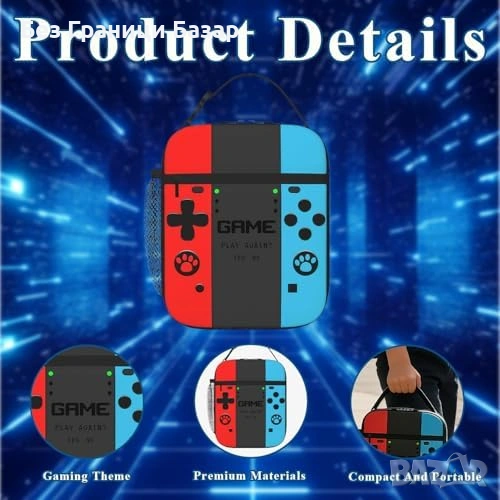 Детска чанта за храна с атрактивен гейминг дизайн и визия на игрова конзола