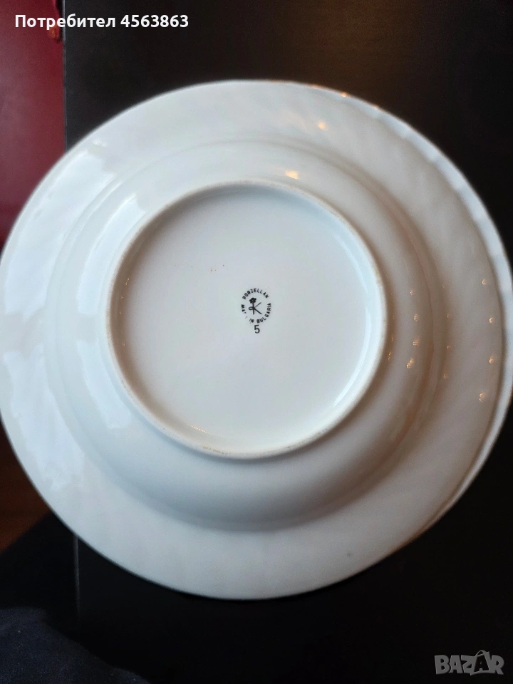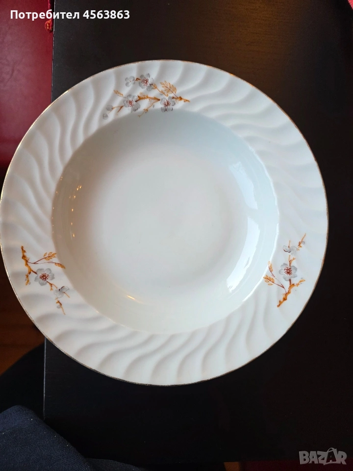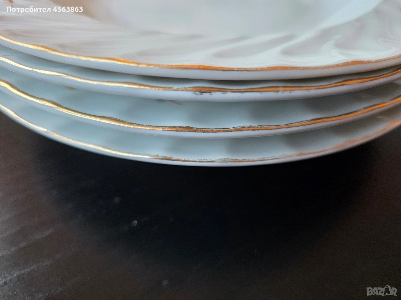 4 дълбоки чинии на Китка със златен кант, леко износен и диаметър 23см.